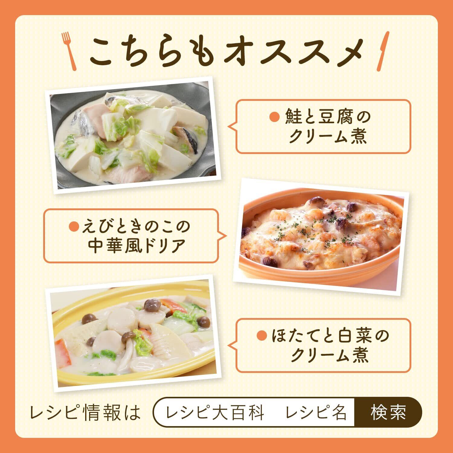 原材料:牛乳、調整クリーム(植物油脂、チーズ、脱脂粉乳)、風味油、食塩、砂糖、チキンオイル、発酵調味料、米みそ、チキンブイヨン、クリーム(乳製品)、でん粉、チーズ、バター、ポークエキス、こしょう、糊料(加工でん粉、キサンタン)、調味料(アミノ酸等)、乳化剤、香料、酸味料