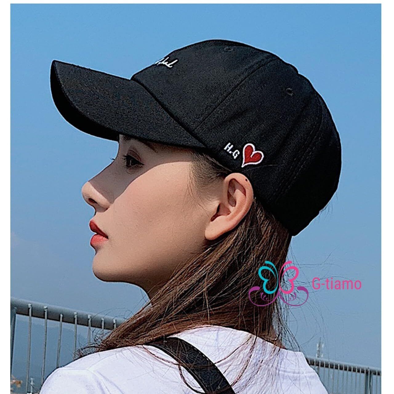 [ジーティアモ] キャップ レディース 英字 ハート ワンポイント 刺繍 アジャスター 調節 帽子 きゃっぷ ぼうし ホウシ 黒 ブラック 白 ホワイト アイボリー 可愛い カワイイ おしゃれ お洒落 オシャレ UV カット 紫外線 日よけ 韓国 ローマ 英語
