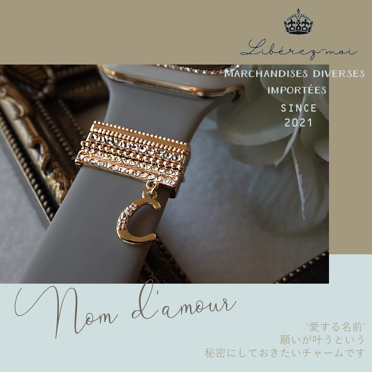 【2022最新】[Libérez-moi] アップルウォッチ用 イニシャル チャーム ラインストーン キラキラ ゴールド おしゃれ アクセサリー レディース モデル ネーム しりこん 38mm 40mm 42mm 44mm 45mm