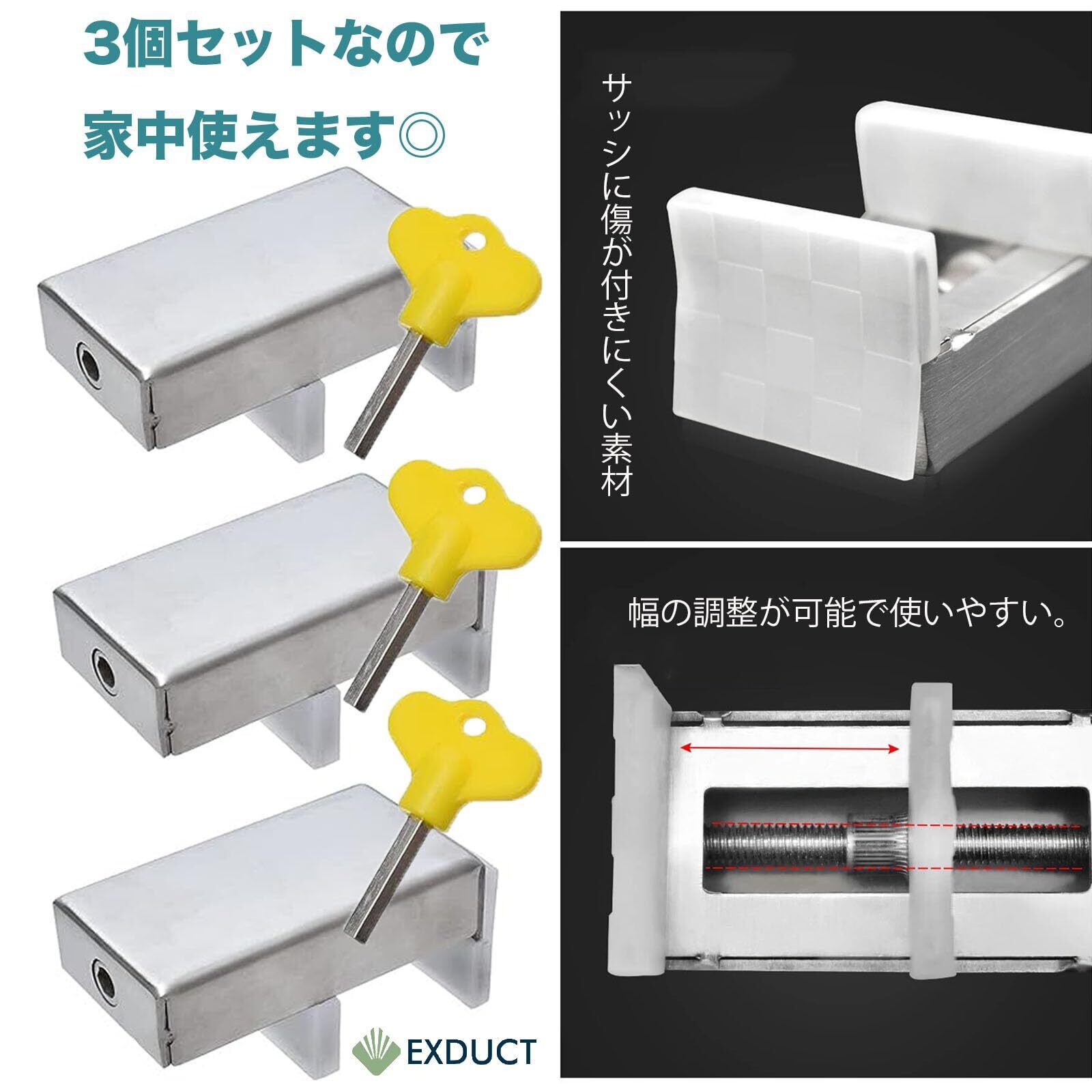 EXDUCT 窓 ロック 3個セット 防犯 安全 サッシ ストッパー 工具付き ベランダ 鍵