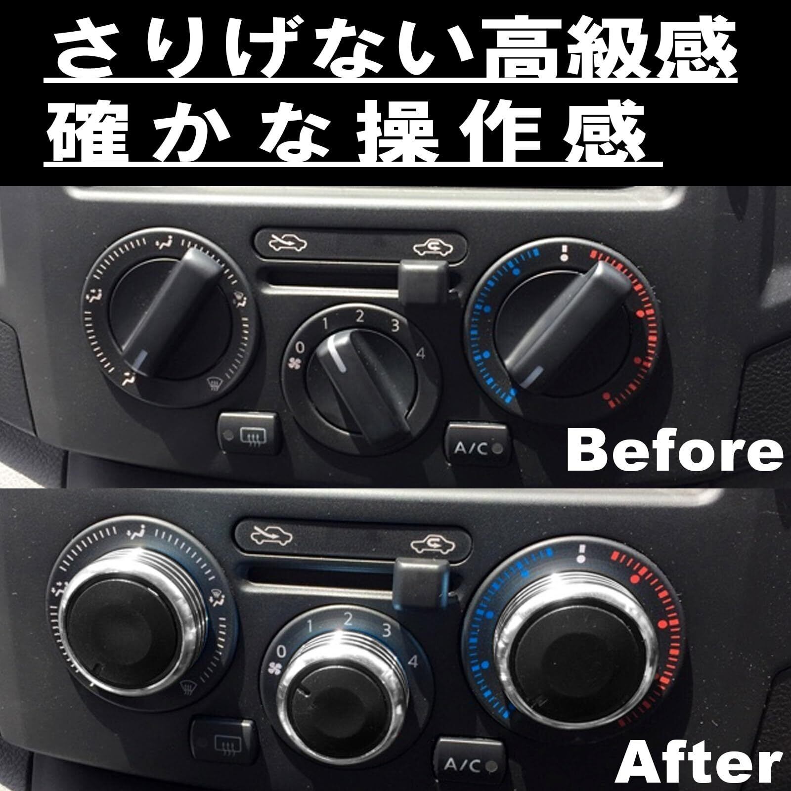 ・【アルミリム エアコンダイヤル】純正ダイヤルを交換することで、見栄え・高級感・プレミアム感が劇的にアップ。純正交換なので取付も簡単。突出するつまみ部で操作性がアップ。ライト点灯時、内側から光が透過しますので綺麗で夜間視認性もバッチリ。