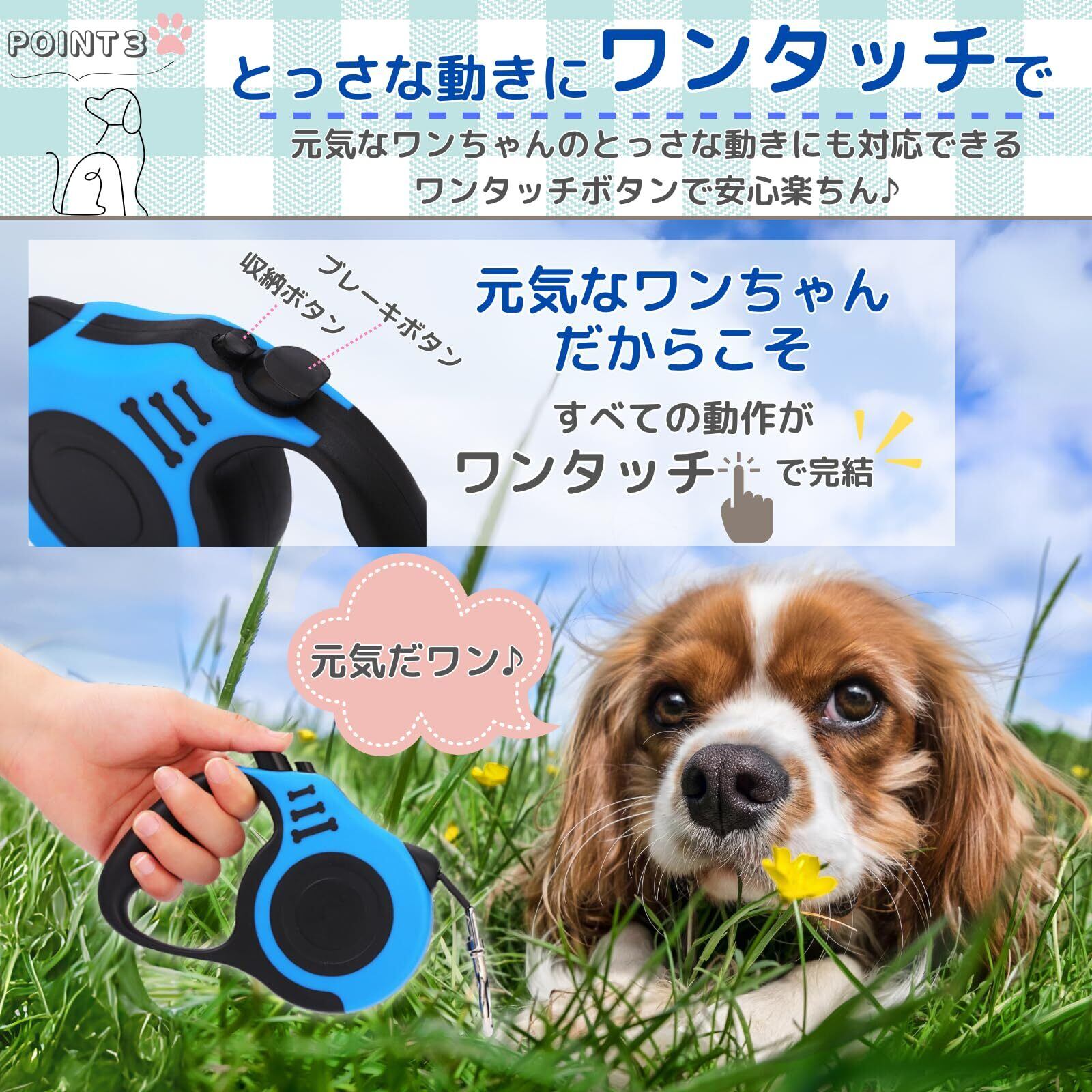 azumafy 犬用 リード 犬 伸縮 シンシュク 自動 巻取り式5m ドッグリード 散歩 小型犬 中型犬 ハーネス 片手操作 伸びるリード ブルー