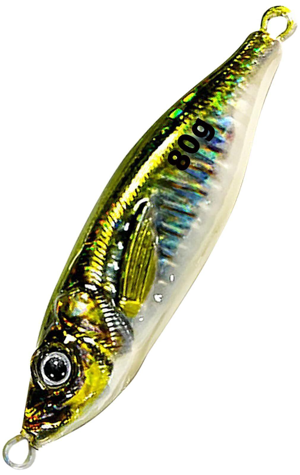 UB-Lab. 魚 釣り リアル 小 アジ メタル ジグ ルアー 3D レーザー デザイン 夜 紫外線 吸収 発光 細い シェイプ フック なし