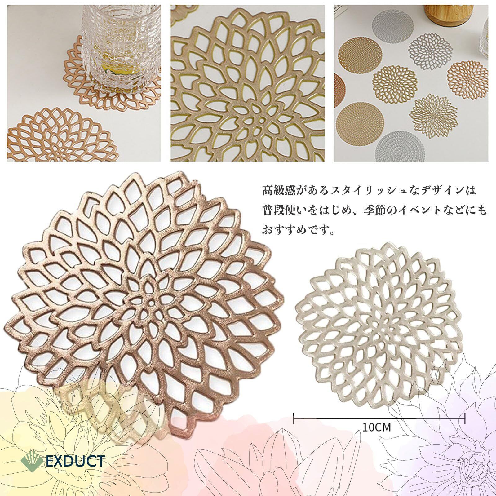 EXDUCT コースター コップ置き 6枚 セット ダリア コップ敷き コップ受け グラスマット PVC (シルバー)
