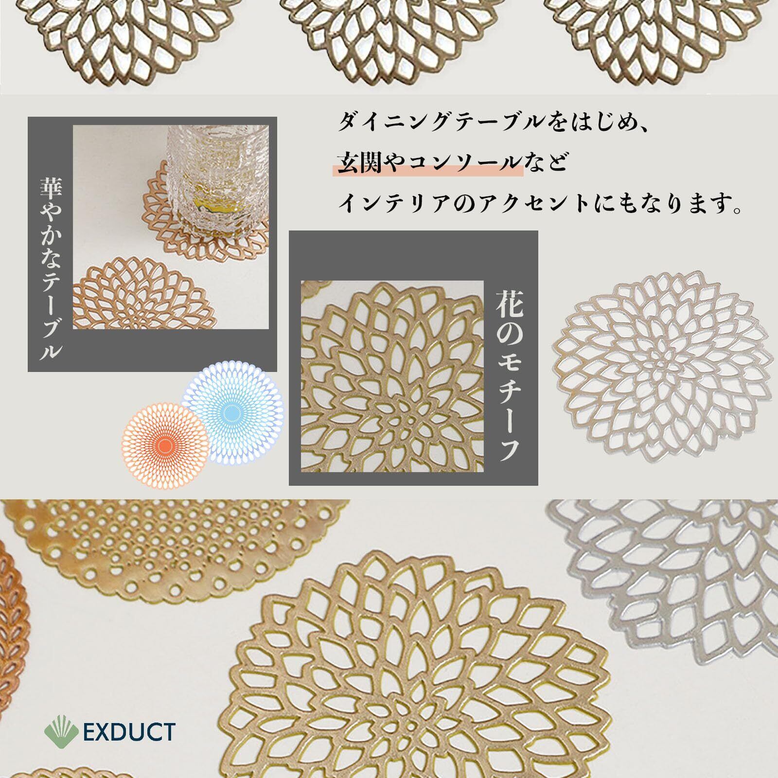 【新着商品】EXDUCT コースター コップ置き 6枚 セット ダリア コップ敷き コップ受け グラスマット PVC (シルバー)