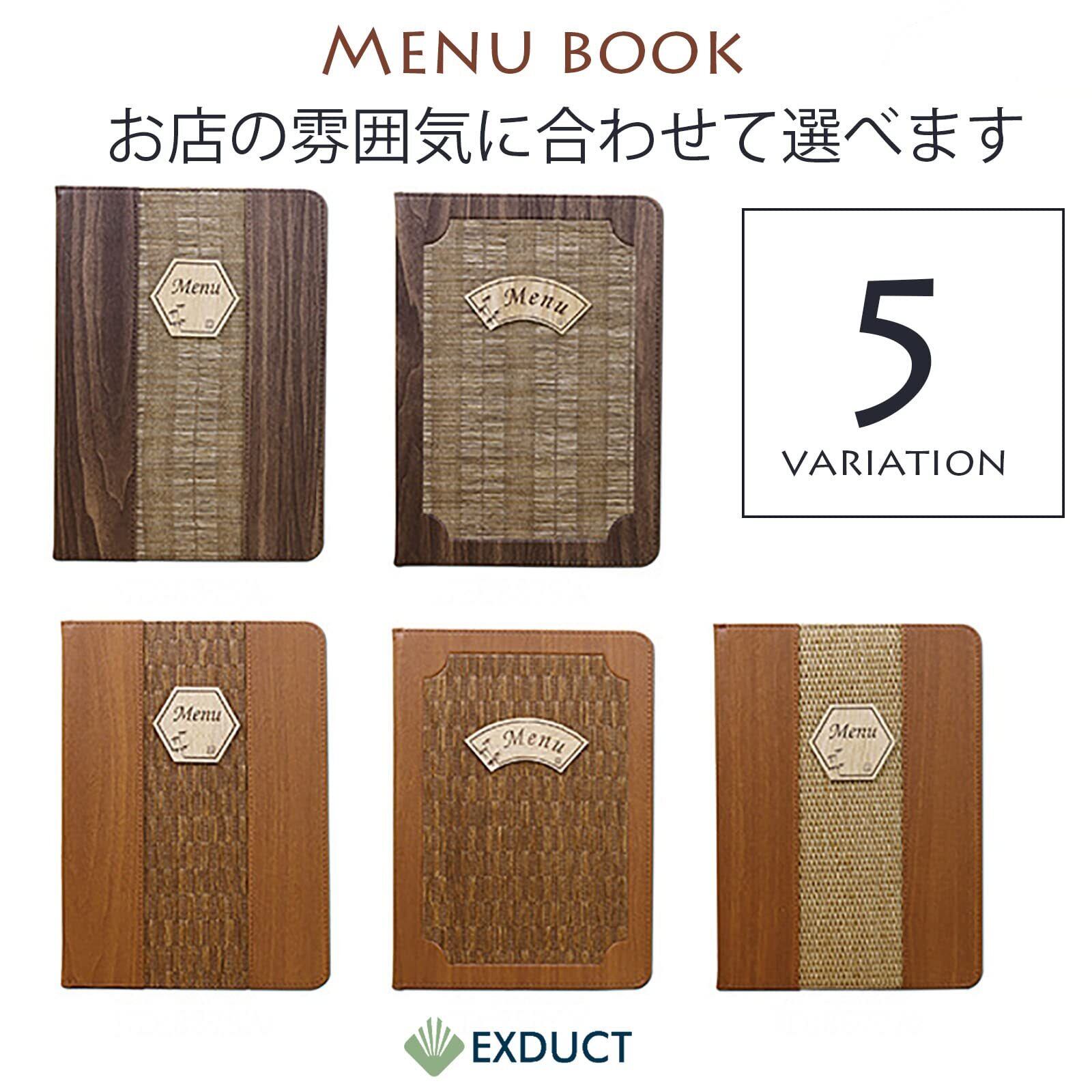 EXDUCT メニューブック 木目調 クリアファイル A4 メニュー ブック ファイル 木目柄 レシピノート バインダー 8ページ 16面 タイプ1
