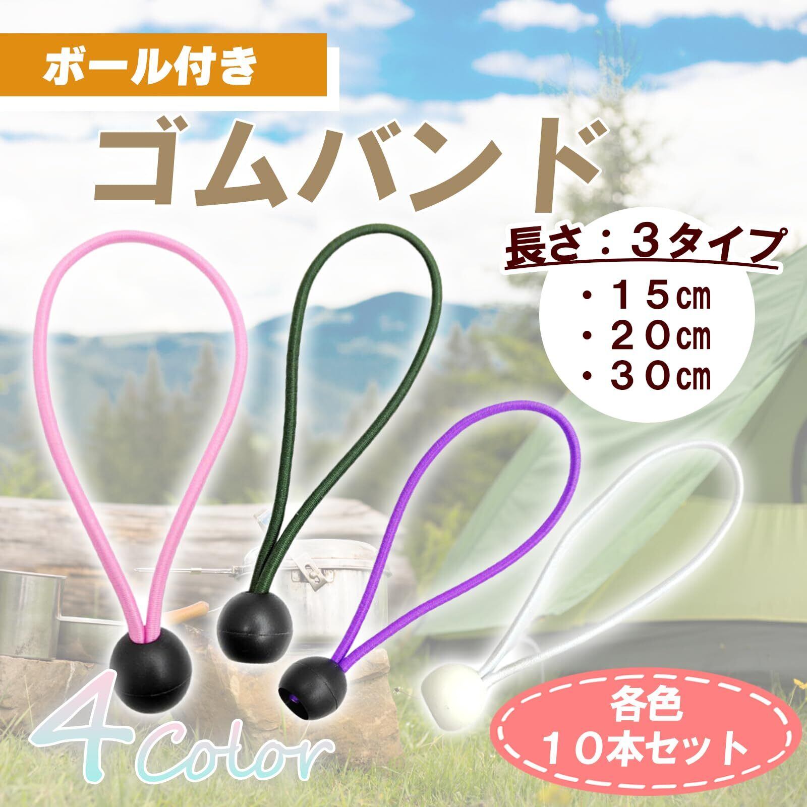 トラックの荷物シートなどに使える汎用ゴムバンド。選べるカラー/選べる長さ/まとめ買い/10本セット 【安心の太さ&伸縮性】伸縮性と耐久性に優れたラテックス素材を採用。太さも約5mmもあるので切れにくく、伸縮性にも優れているから長期間利用できる!丈夫だから何度でも使えるオススメの逸品です。 【簡単で使いやすい】使い方はとっても簡単!ハトメ(穴)に通してボールに引っ掛けるだけ!簡単で早くで使いやすいので、ちょっとした固定にも仮留めにも幅広く使えてしまいます。 【様々な用途で使える】幅広い用途でご利用いただけます。トラックシートの固定、荷物の仮留め、固定用にはもちろん、キャンプで使うテントのタープクッションコードとして、天幕、テントなどのアウトドア用品、照明ライプ、カーテン、サッカーネット、バラソル、コンセントやコード類など。アイデア次第で様々なシーンに対応 【選べるカラー&選べる長さ】カラーは全部で4種類。ホワイト(白)、グリーン(緑)、パープル(紫)、ピンクよりお好きなカラーをお選びください。長さは全部で3種類。15cm、20cm、30cmの3種類より使う用途に合わせてお好きな長さをお選びください。バンドを結んで連結すればさらに長くも調節できちゃいます。