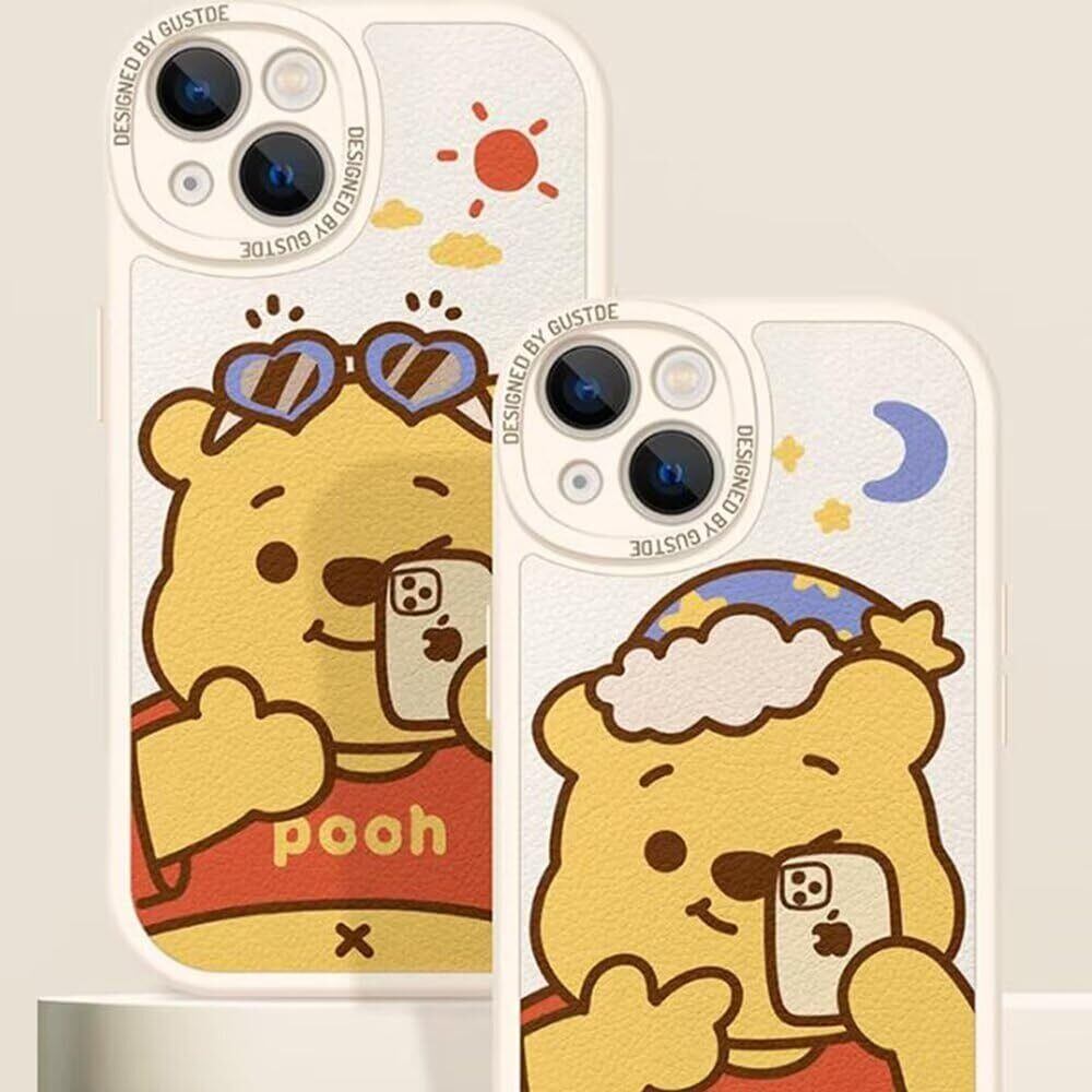 プーさん iPhone13 用 ケース ディズニー くまのプーさん スマホケース シリコン カバー キャラクター かわいい [軽薄型 ワイヤレス充電対応 レンズ保護 ストラップホール付き] 6.1インチ ケース アイフォン13 対応 WHITE-A