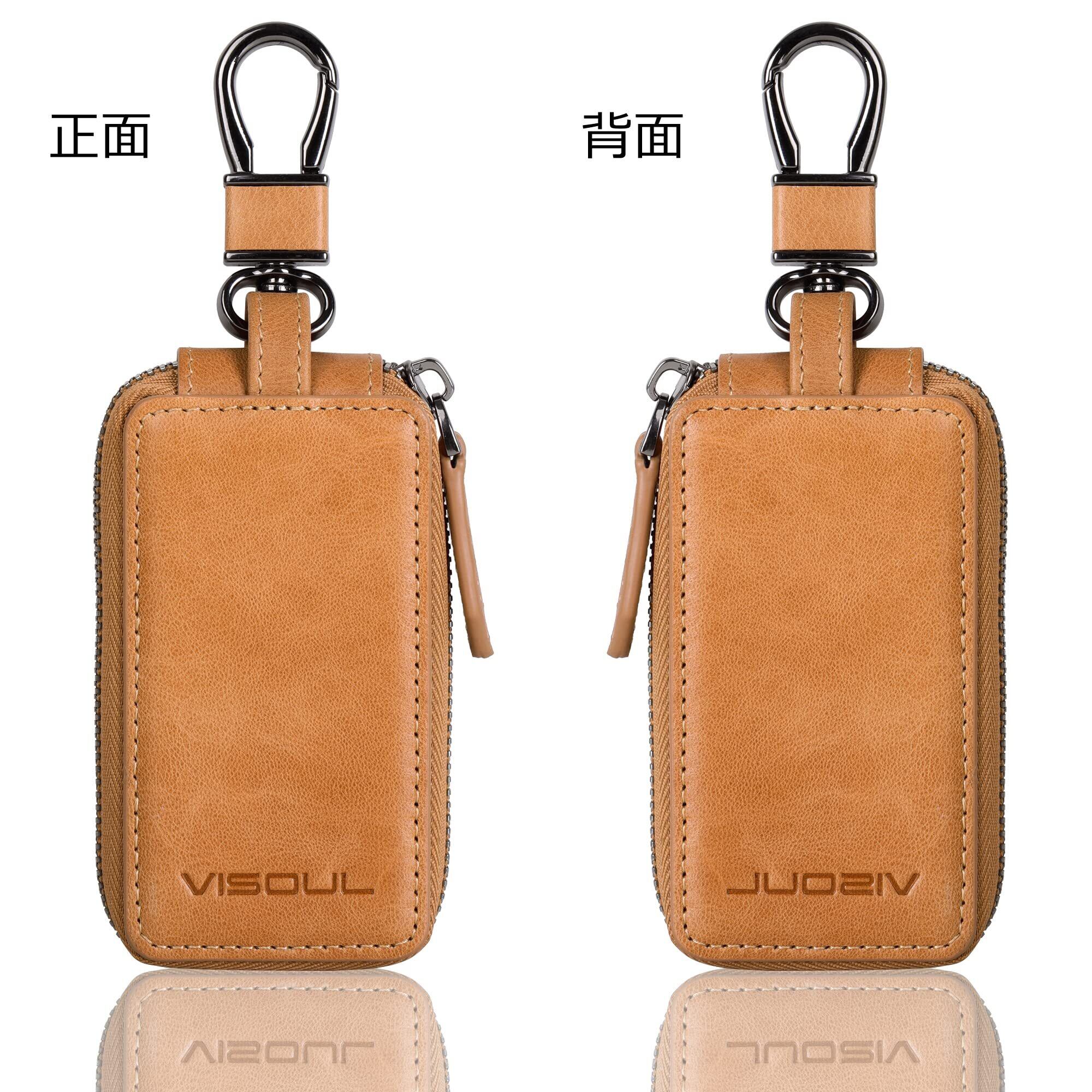 【特価セール】[VISOUL] スマートキーケース 本革 カバー型 キーホルダー 牛革 メンズ スマートキー 車 本革 キーカバー (D型上下開け キャメル)