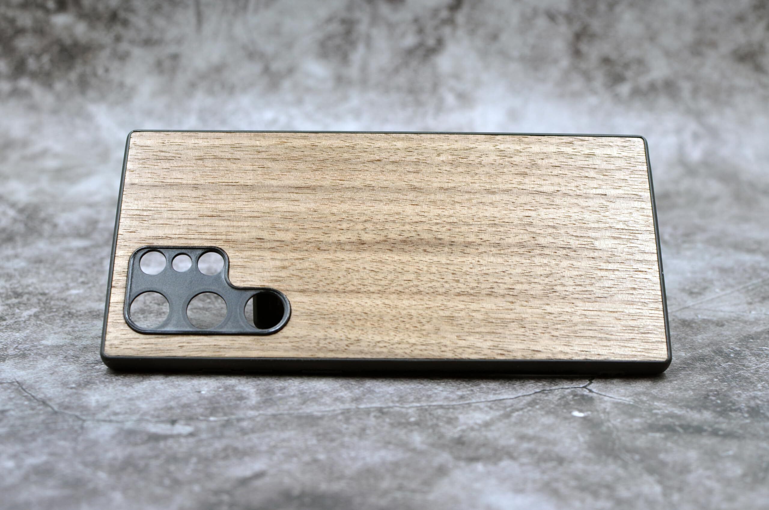 MQman GalaxyS24Ultra ケース 木製カバー 胡桃の木 原木 素材 ギャラクシー 天然木 耐衝撃 ソフト クルミ ワイヤレス充電対応 (GalaxyS24 Ultra)