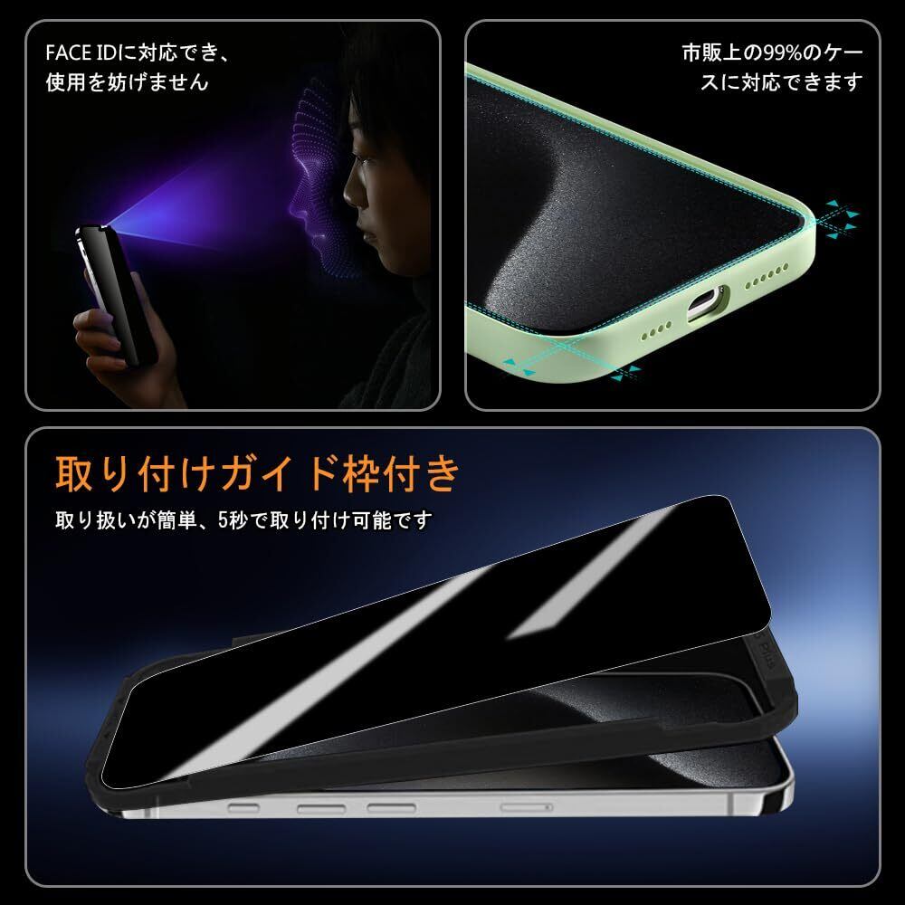 iPhone 15 Pro Max ガラスフィルム 覗き見防止 【28°プライバシー保護】 VanLee 強化ガラス 液晶保護フィルム 2.5D全面保護 日本製旭硝子素材 指紋防止 硬度9h