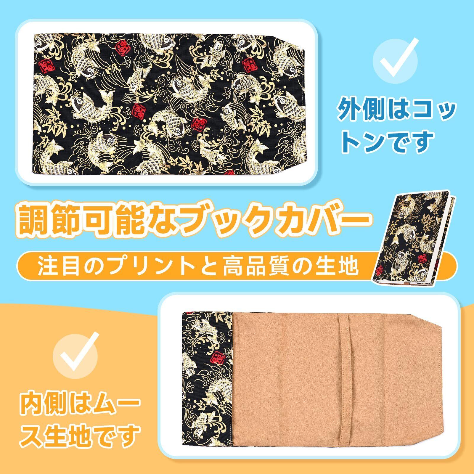 PURAIMAブックカバー ブックカバー 文庫本サイズ ブックカバー フリーサイズ 文庫本カバー 目標達成ノート ブックカバー 新書 新書 ブックカバー ブックカバー 単行本サイズ 単行本 ブックカバー 文庫本 ブックカバー ブックカバー 文庫 本カバー ブックカバー カバー 調整可能な 棉麻材质 A5サイズ(黒福鯉)