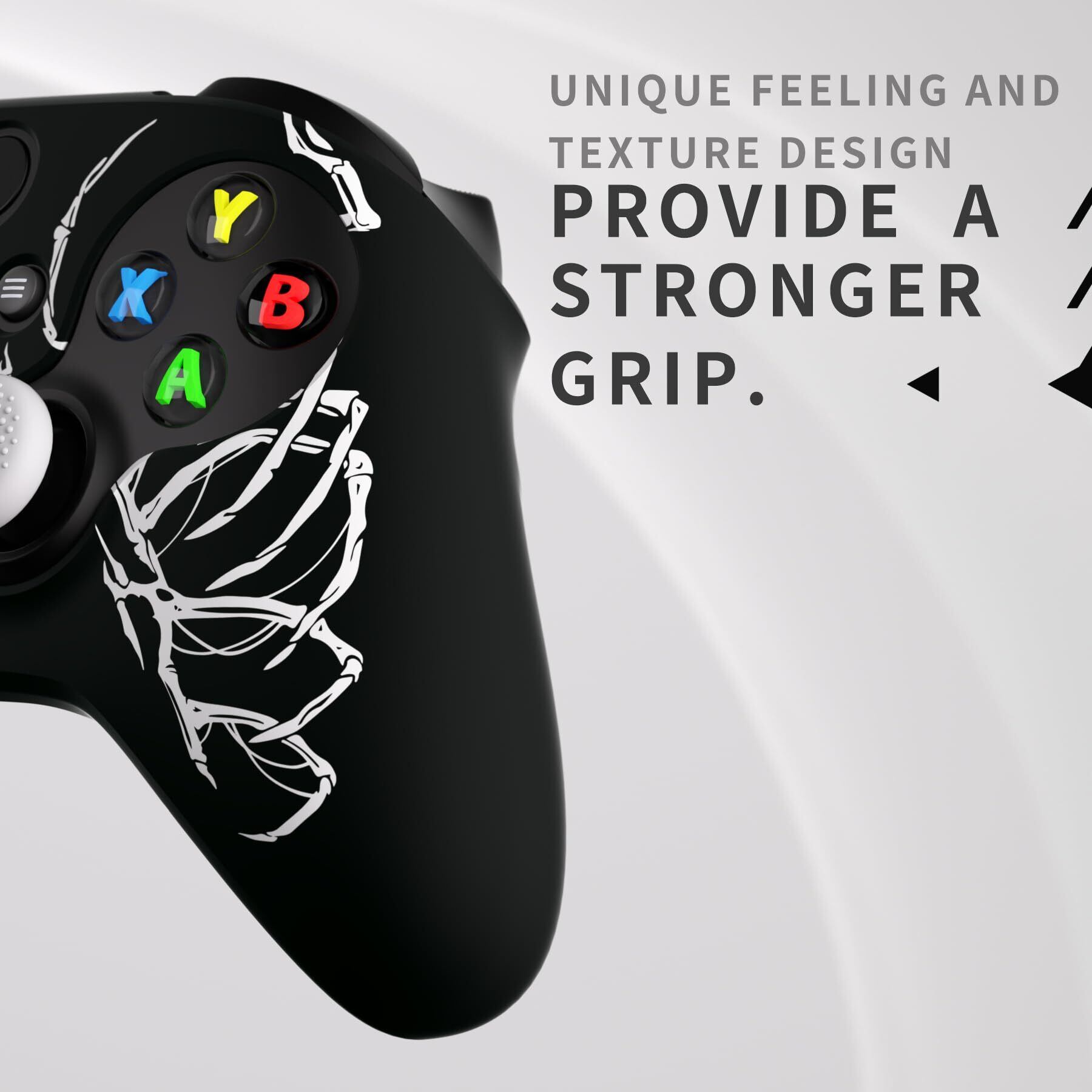 【2022最新】PlayVital Pure Xbox Series Xコントローラーに対応用アンチスリップシリコーンカバースキン、黒い親指グリップキャップ付き、Xbox Coreワイヤレスコントローラ対応用ソフトラバーケースプロテクター【ブラック&ホワイト(カービングスカル)】