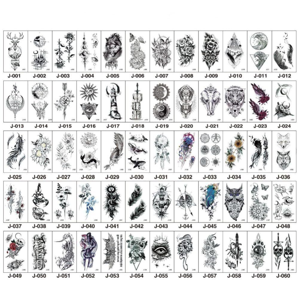 【CRSHIP】タトゥーシール 刺青シール 60枚セット入れ墨シール タトゥー リアル 防水 長持ち おしゃれ かわいい 羽 (Jシリーズ)