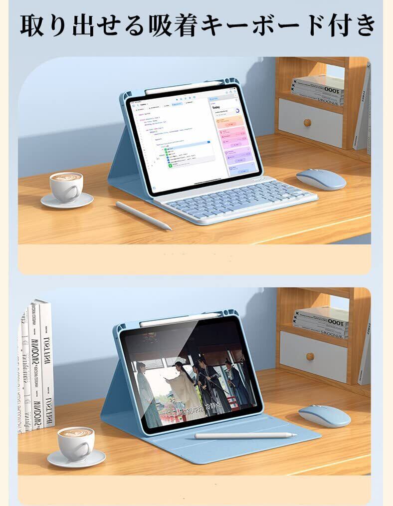 【脱着式ワイヤレスキーボード】 保護ケースとBluetooth キーボードは脱着可能なので独立使用できます。 キーボードはBluetooth接続で10メートル以内間隔操作できます。 iPad以外、iPhone、Macなども使えます。