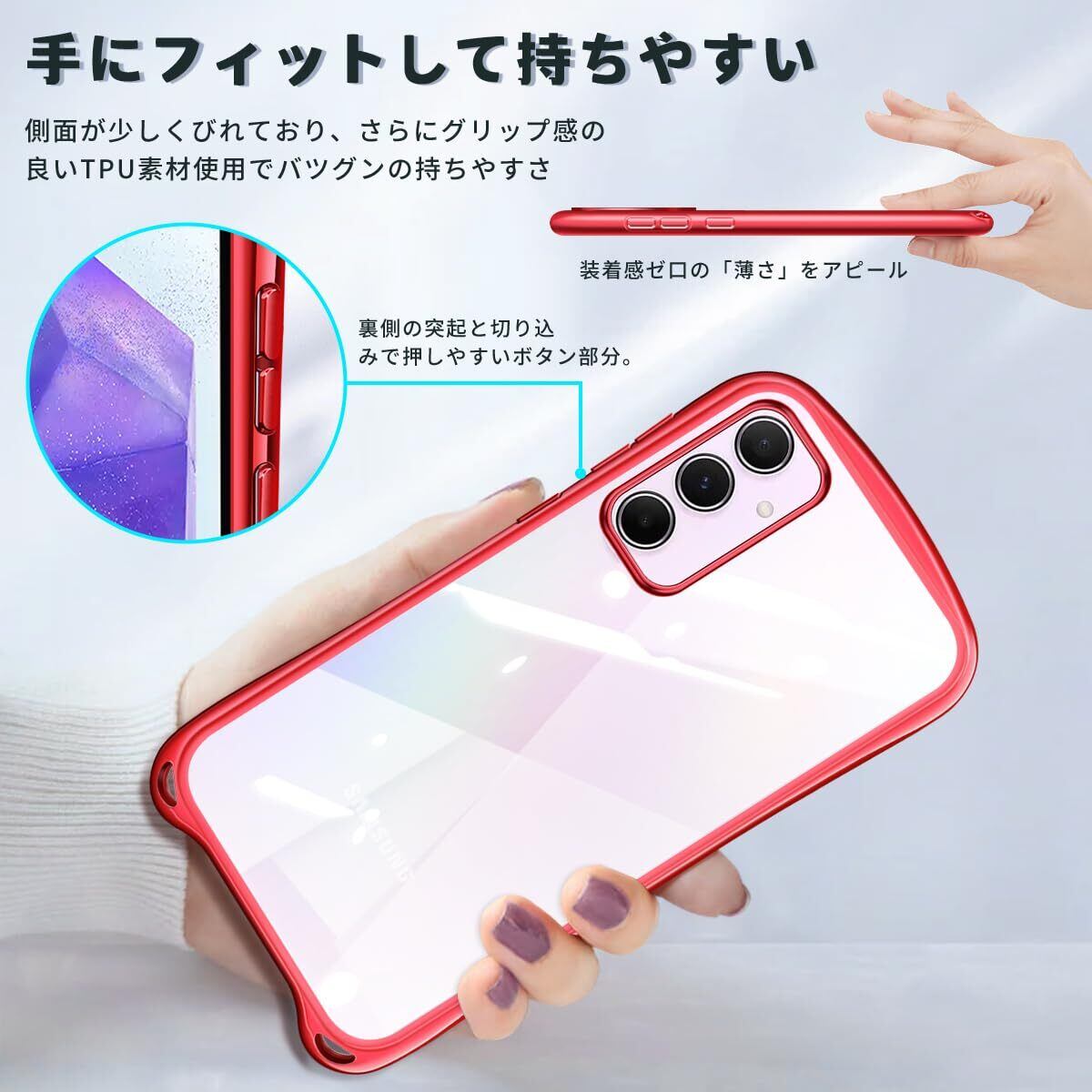 Samsung Galaxy A55 5G ケース クリア ショルダー ストラップ付き ギャラクシー A55 カバー 透明 肩掛け 斜めかけ TPU シリコン メッキ加工 耐衝撃 全面保護 薄型 韓国 可愛い 縄掛け Galaxy A55 SC-53E スマホケース (レッド)