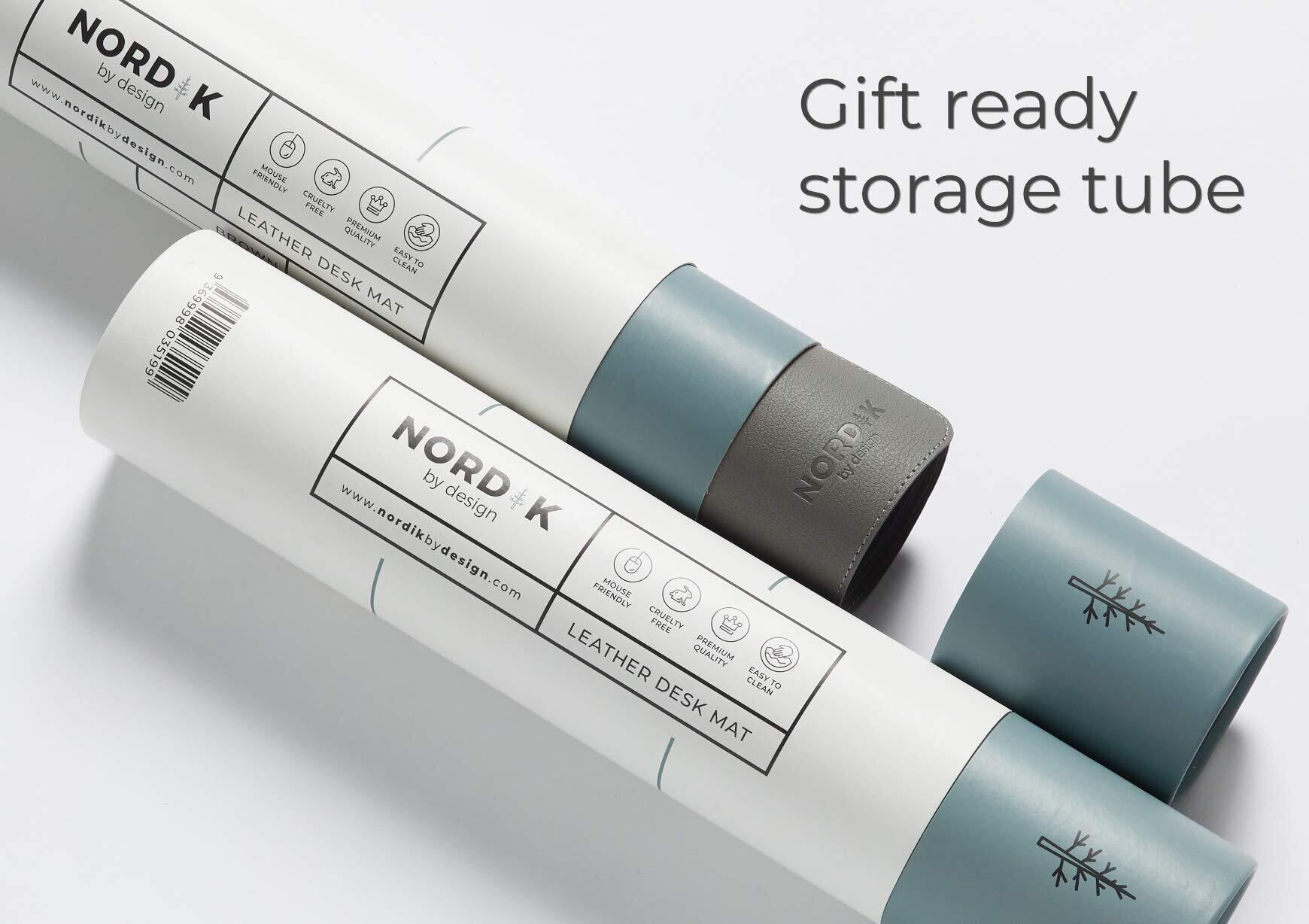 Nordik フェイクレザー デスク マット ケーブル オーガナイザー (グレー 90 X 43 cm) プレミアム拡張マウス マット ホーム オフィス アクセサリー用 - フェルト ビーガン ラージ レザー デスク パッド プロテクター & デスク ブロッター パッド 装飾