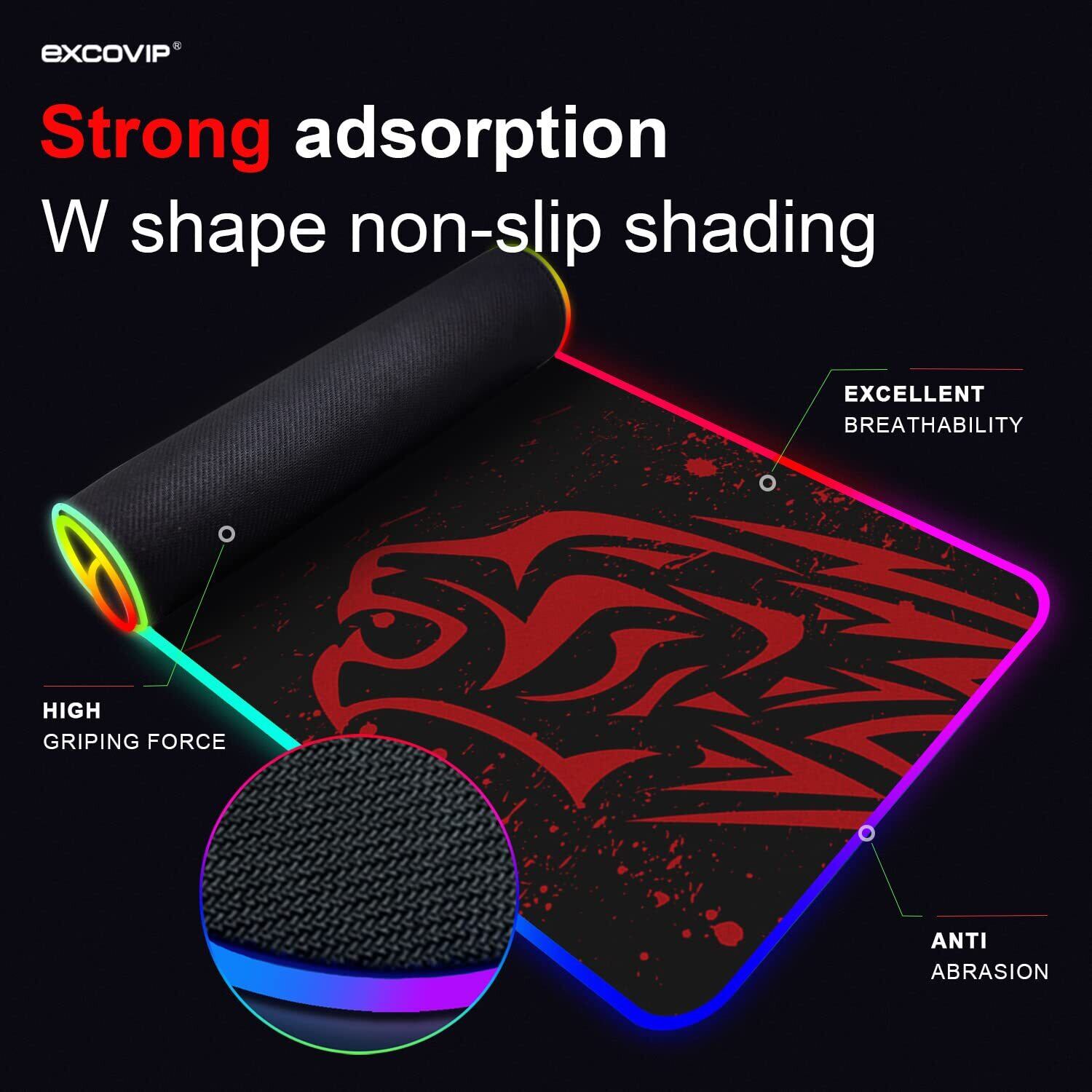 excovip RGB ゲーミングマウスパッド 大型 800*300*4mm マウスパッド 拡張 USB LED 発光 マウスパッド 7色の発光色 カラフル滑り止め ラップトップマットオフィスおよび家庭用デスクマット (RGBレッドレオパード)…