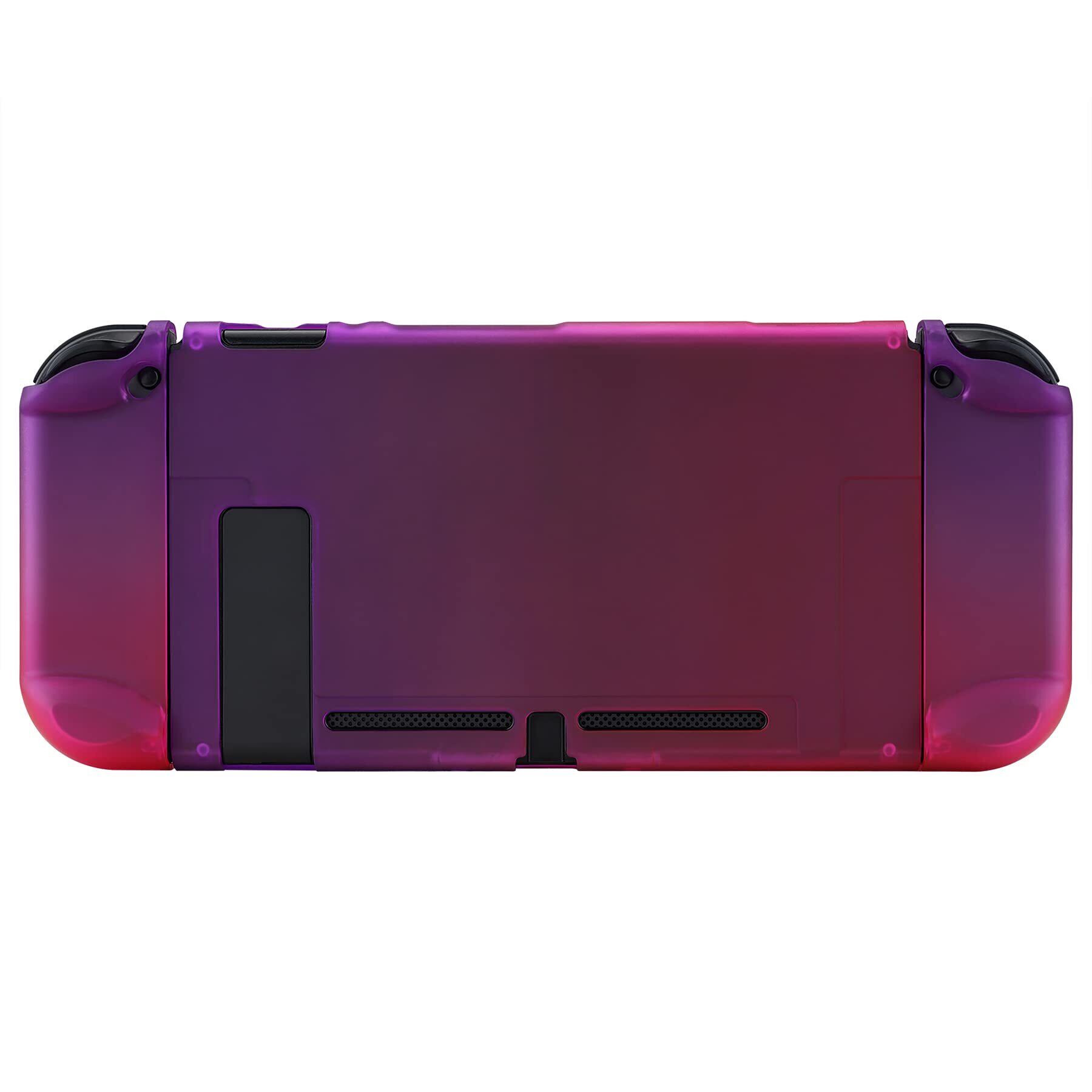 eXtremeRate PlayVital Switchコンソールに対応用バックカバー、NS Joyconハンドヘルドコントローラー分離可能プロテクターハードシェル、Switch用にカスタマイズされたドッキングできる保護ケース【グラデーションフクシアローズ】