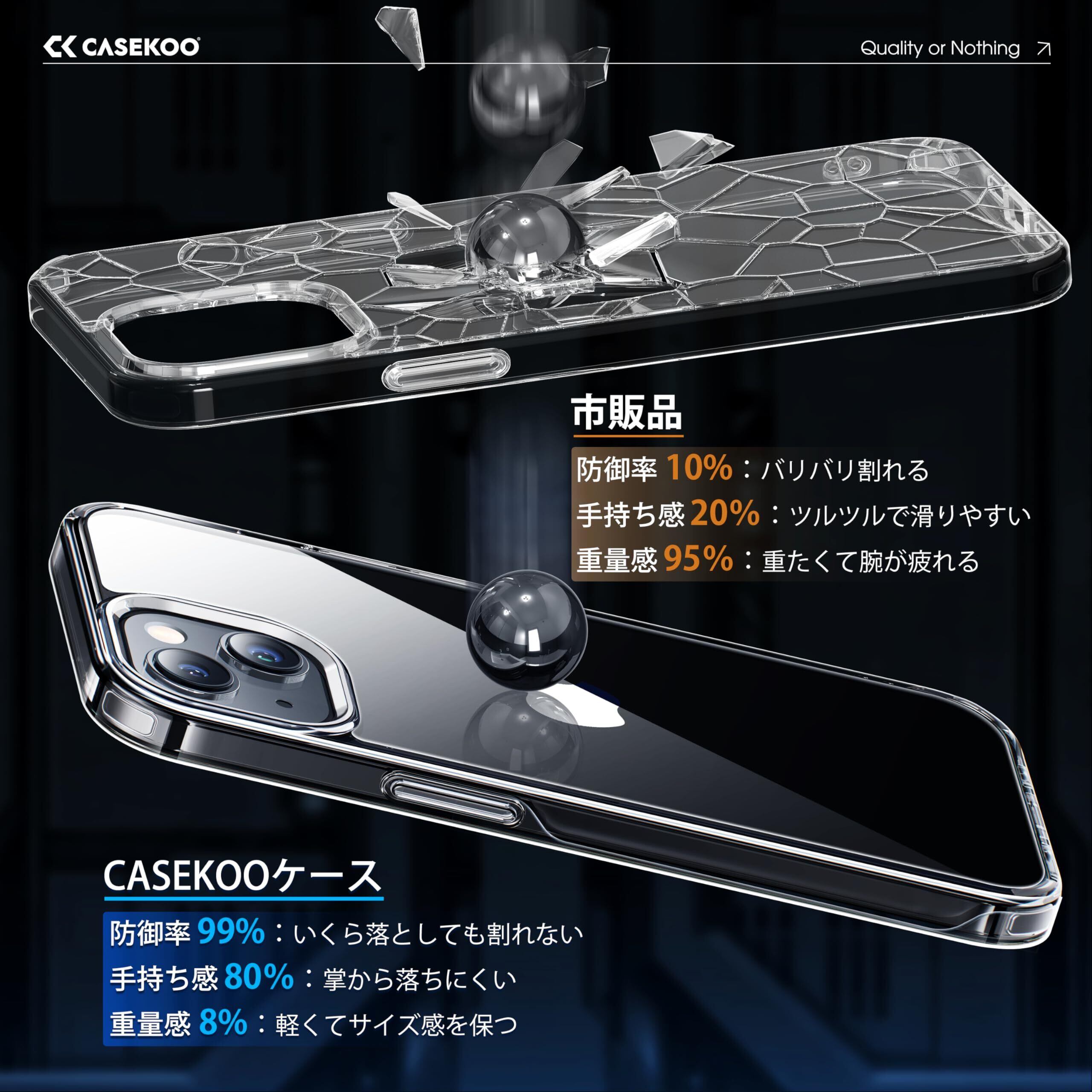 【極々透明感・2025年革新耐黄変技術】CASEKOO iPhone 15 用 ケース クリア 耐衝撃 米軍MIL規格 黄変防止 ストラップホール付き ワイヤレス充電対応 アイフォン15用ケース 6.1インチ 「KORI」(クリア)