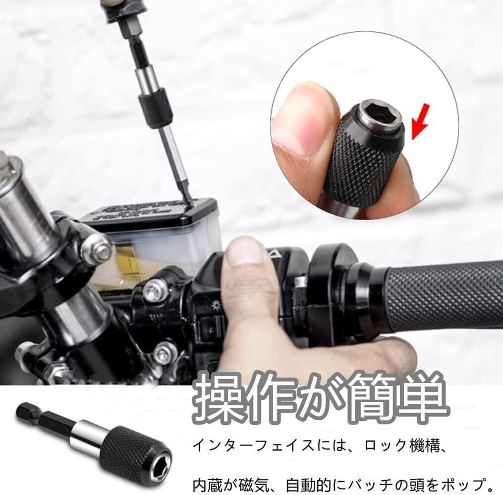 ワンタッチで装着可能な使い方簡単なデザイン:この延長ビットはワンタッチで装着可能で、使い方が簡単です。幅広くお使いいただけます。また、マグネットタイプで取り付けたビットをしっかりホールドし、内蔵が磁気、自動的にバッチの頭をポップするため、作業をよりスムーズに行えます。