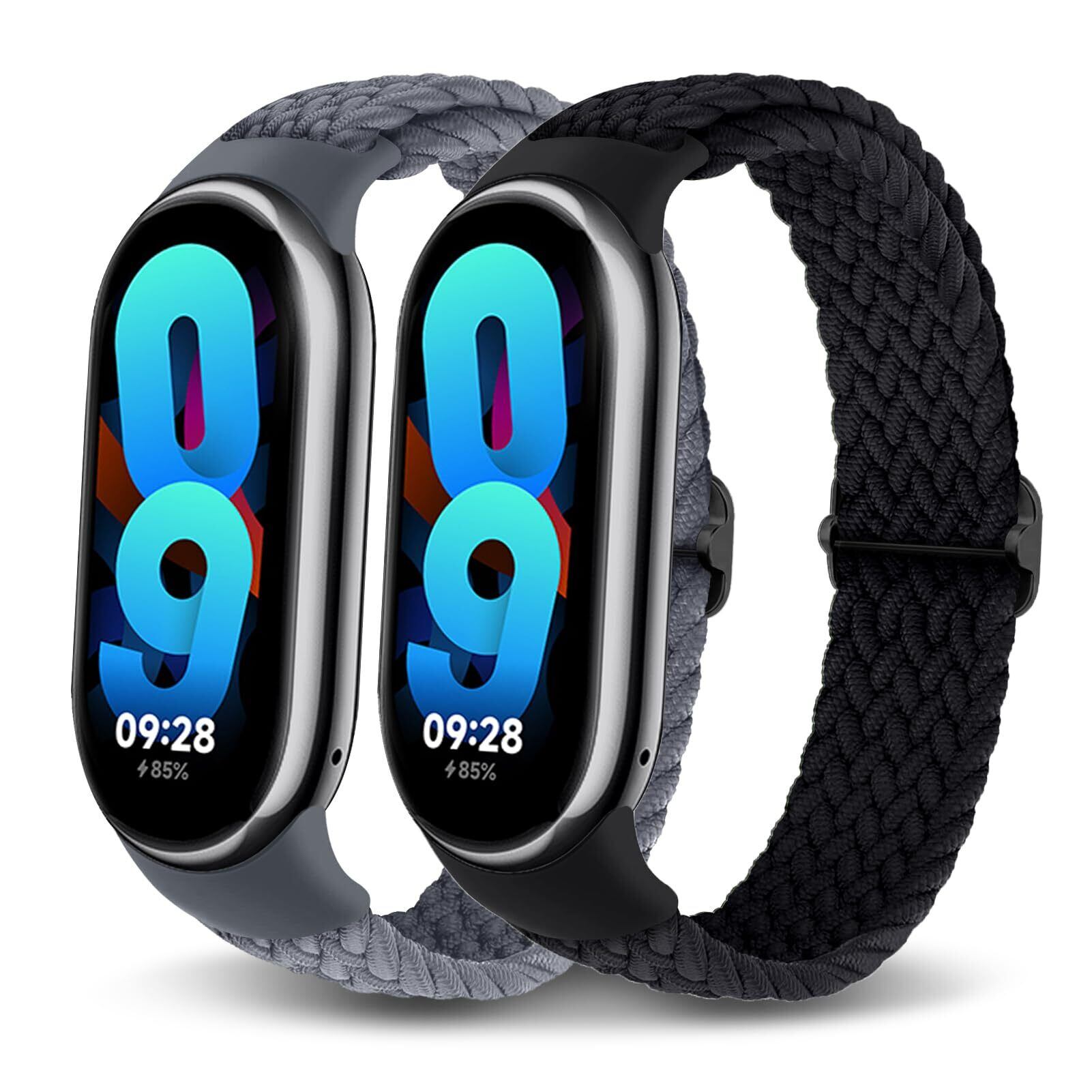 【特価セール】[Wowstrap] 【2枚入り】コンパチブル Xiaomi Smart Band 9 替えバンド Xiaomi band 8 替えバンド mi band 8 換えバンド 編み込み ゴム 伸縮性 ソロループ 編組 柔らかい 通気 メンズ レディース スポーツ 防汗 ストラップ 交換ベルト、ブラック/グレー
