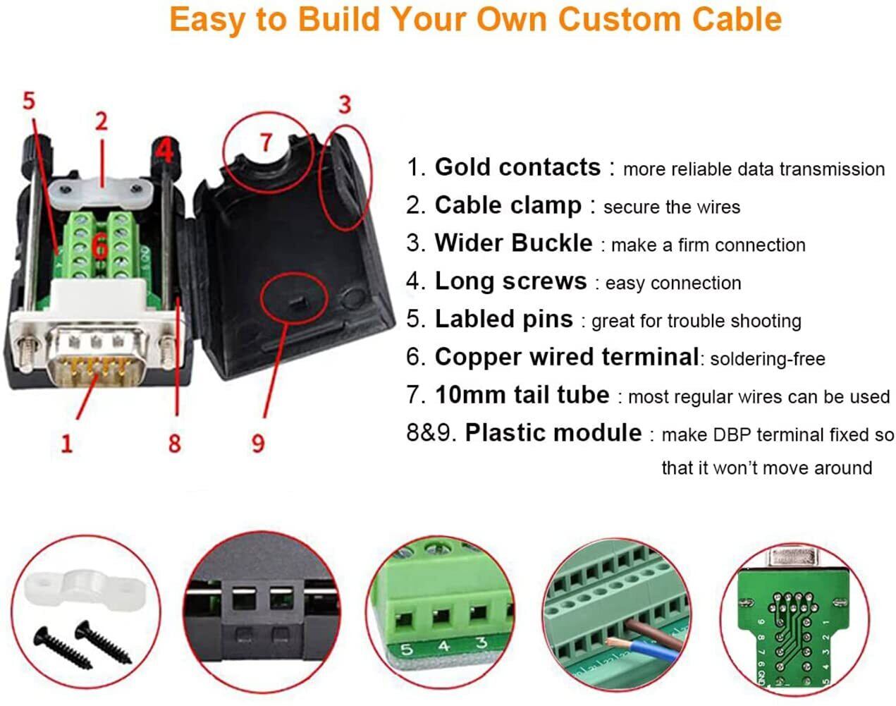 【特価セール】DTECH はんだ付け不要 DB9 コネクター (DB9(オス)+ロングボルト)