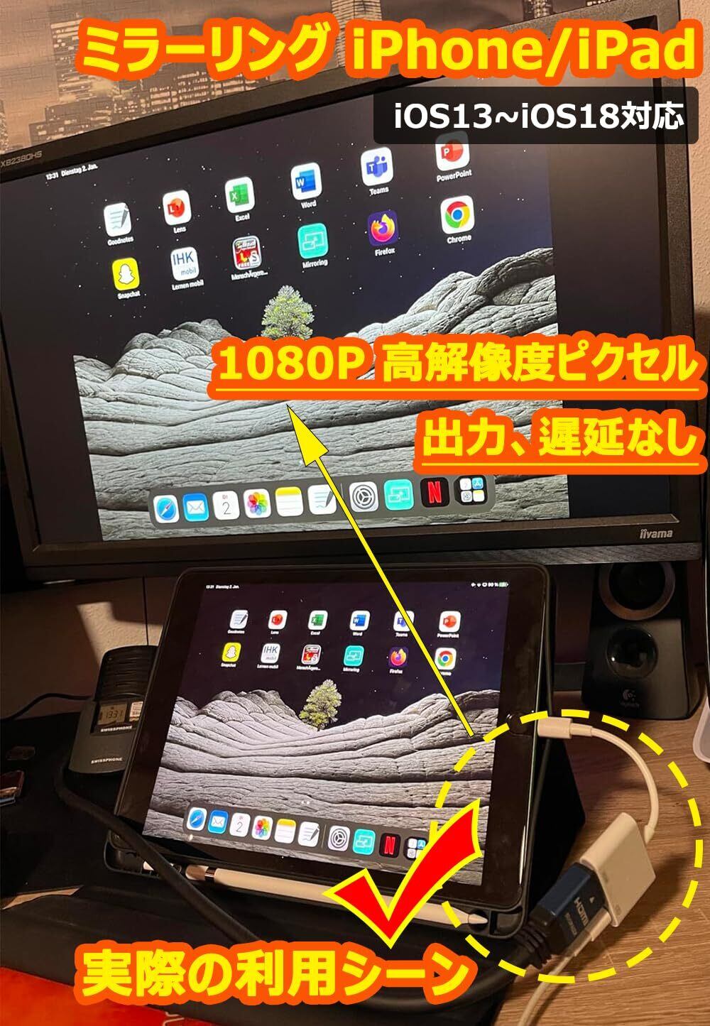 iPhone hdmi変換ケーブル MFi認証品【2025新登場・給電不要・2年】ミラーリング iPhone/iPad | スマホ を tv に 映す| ライトニング hdmi 変換 | 1080P遅延なし| 音声同期出力 TV大画面 | 自動接続 | Lightning hdm i日本語取説付き(iOS13~iOS18対応)