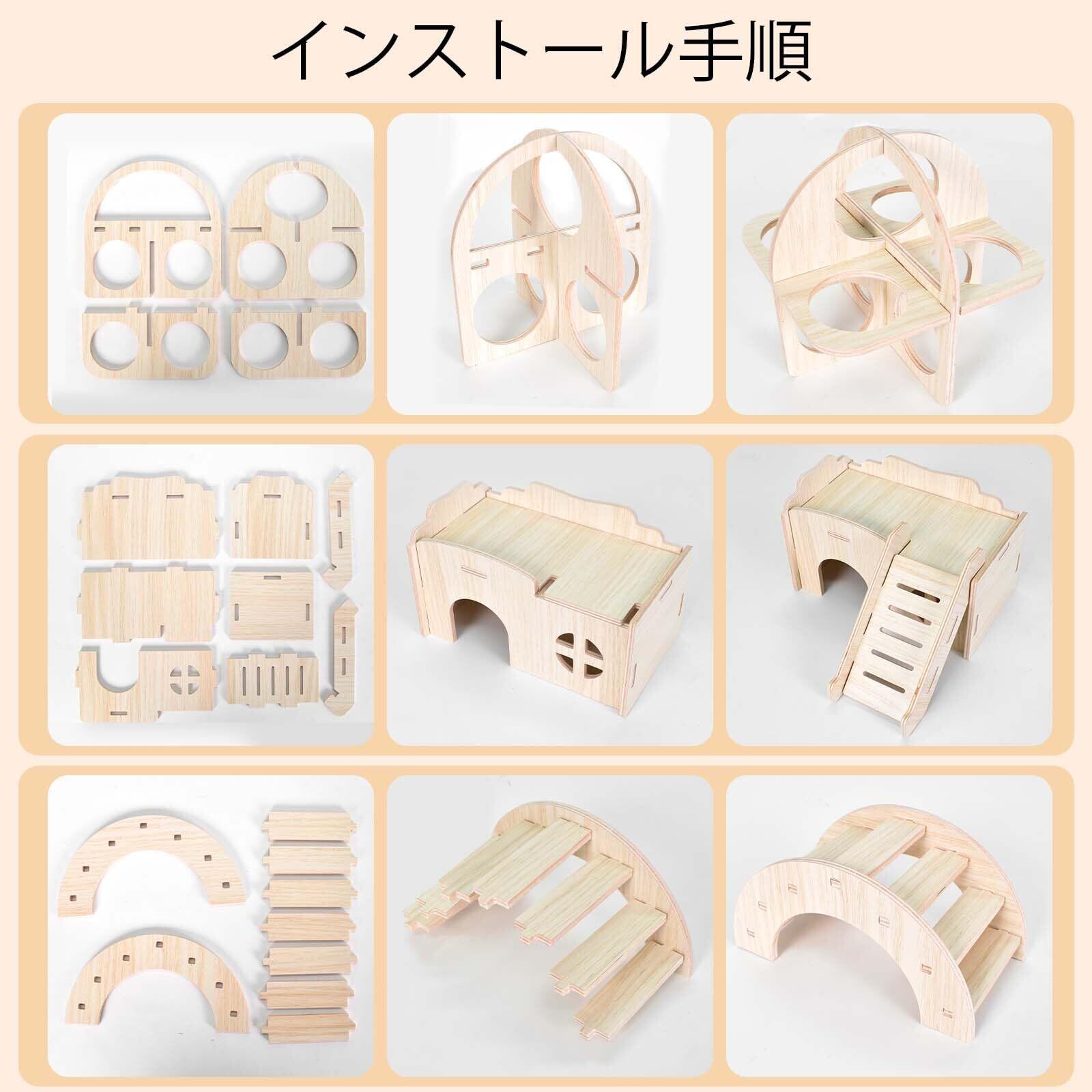 【高品質の材料】このハムスターのおもちゃセットは純粋な天然木材で作られており、乾燥しており、安全で環境に優しい、無臭で、健康で耐久性のある防水コーティングが施されています。 ペットのために安全で快適な家を作りましょう。