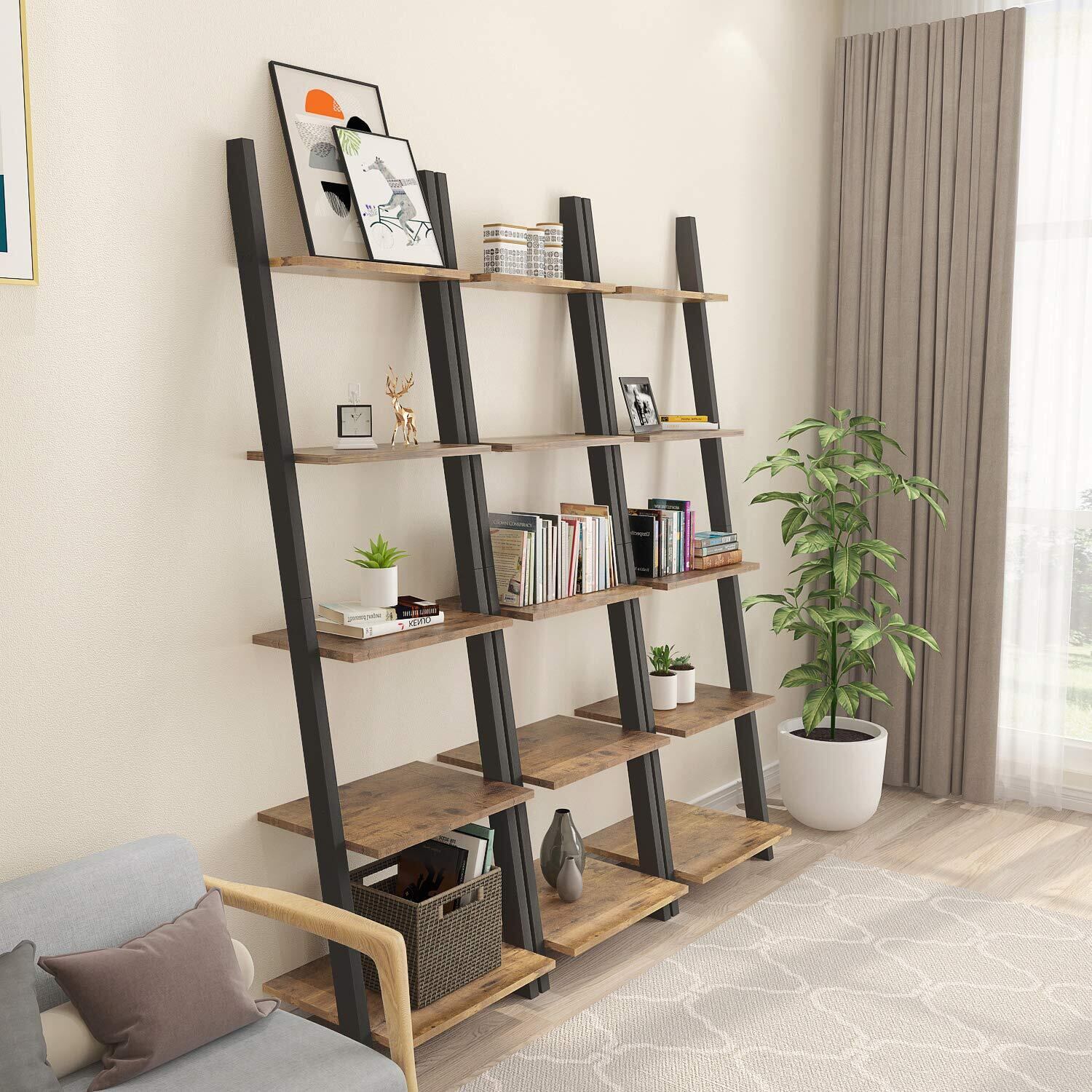 【特価セール】O&K オープンシェルフ 飾り棚 棚ラック木製 5段ラック おしゃれ 本棚スリム 壁面収納 北欧スタイル ブラウン 収納棚 玄関 リビングルーム 木目幅45×奥行35×高さ154.3cm(ブラック)