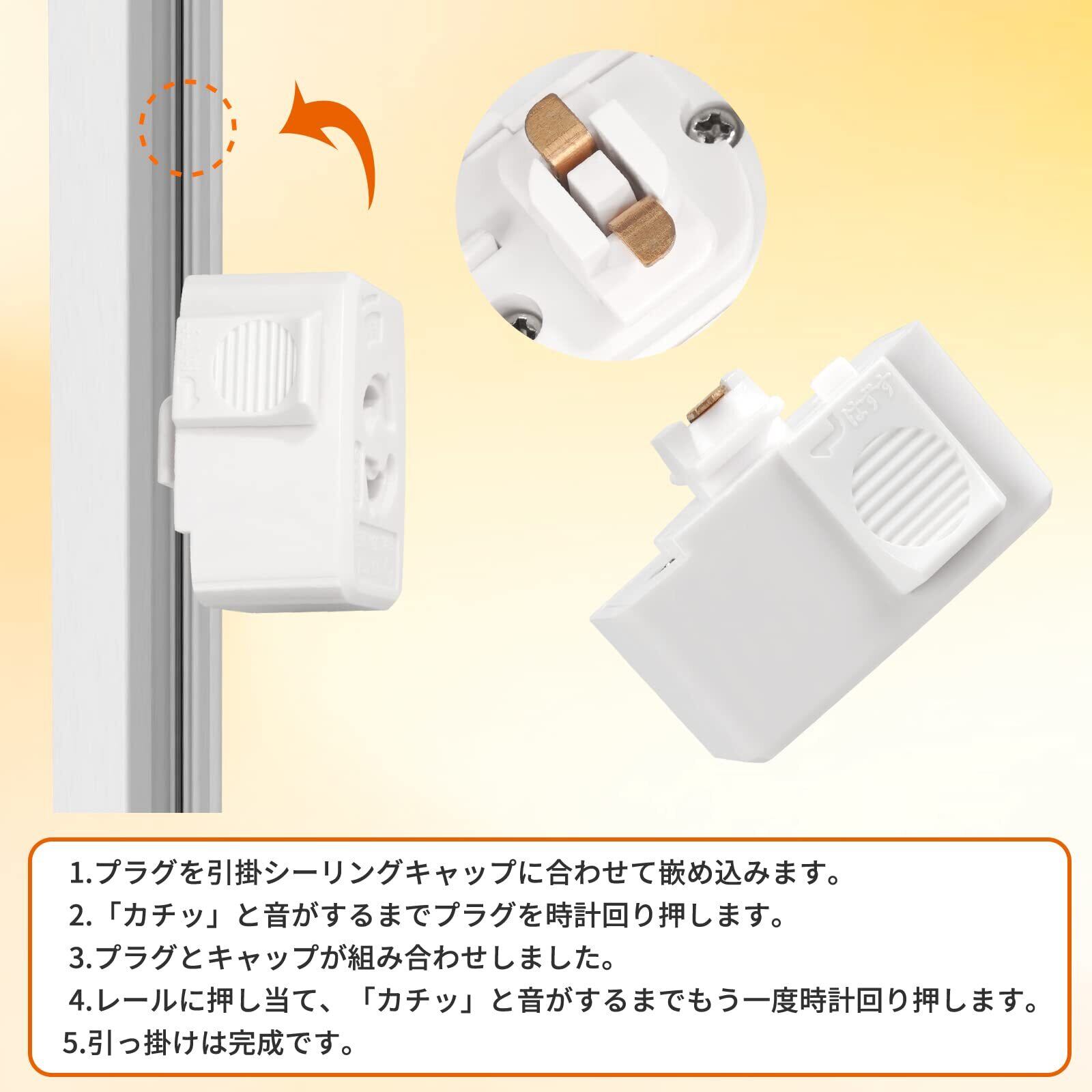 3.取り付け簡単:工事不要で、ダクトレールの溝に差し込んで右に回すだけで、手軽に取り付けられます。