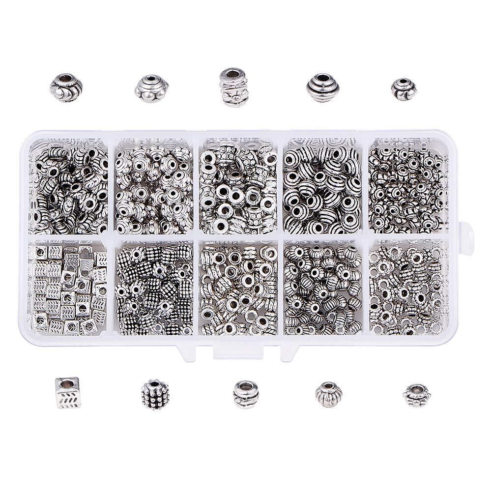 PH PandaHall 約500個 10種 合金 スペーサービーズ 菊座 花座 座金 メタルビーズ チャーム チベット風 ジュエリー製作 アクセサリーパーツ DIY用 クラフト 手作り素材 アンティークシルバー