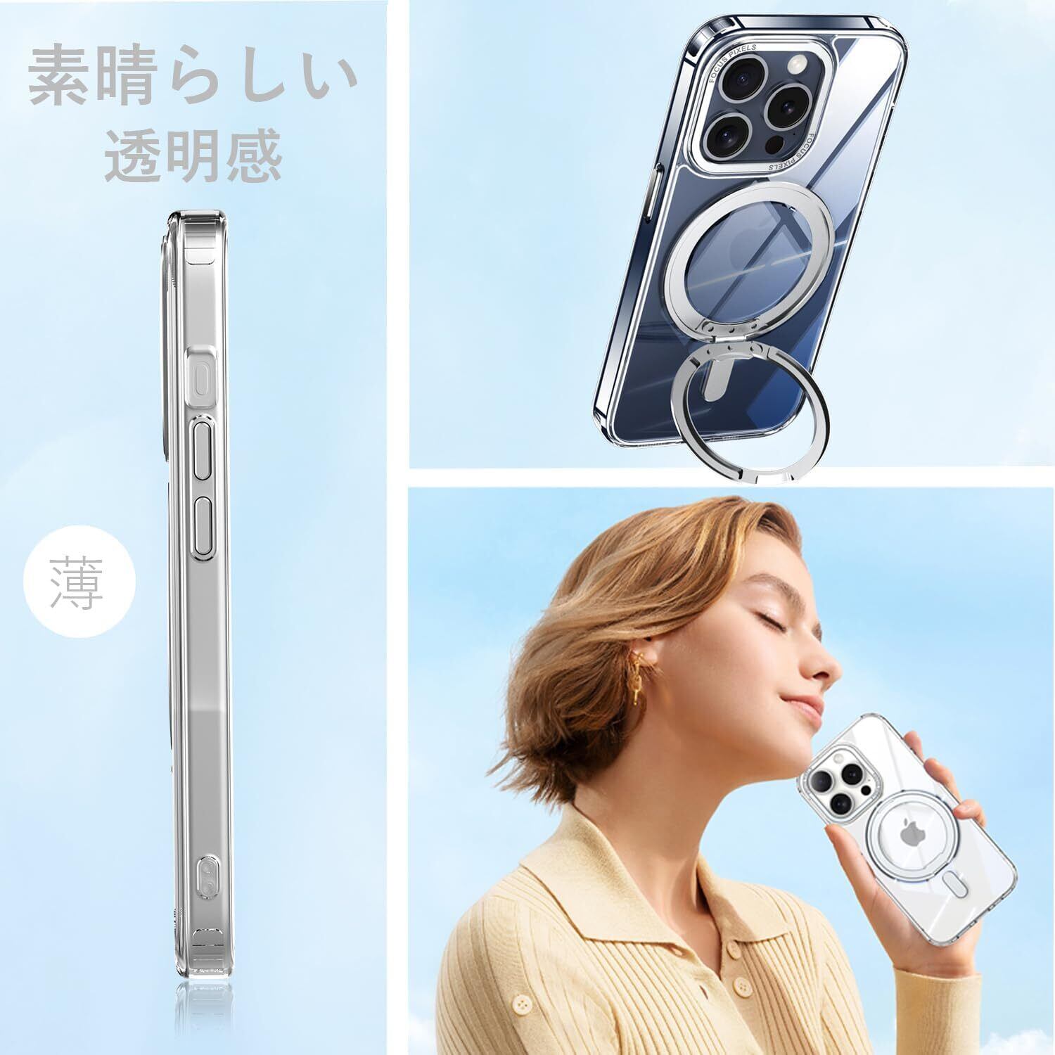 【MagSafe対応】超世代的な隠しスタンドと強力なマグネットリングの強力な結合により、高い吸着力でガッチリと固定しながら充電ができます。安定性を持ち、充電器を近づけると高速ワイヤレス充電が実現です。また、磁気を利用しているため充電器以外にもスタンドやウォレットなどのアクセサリーに固定可能。