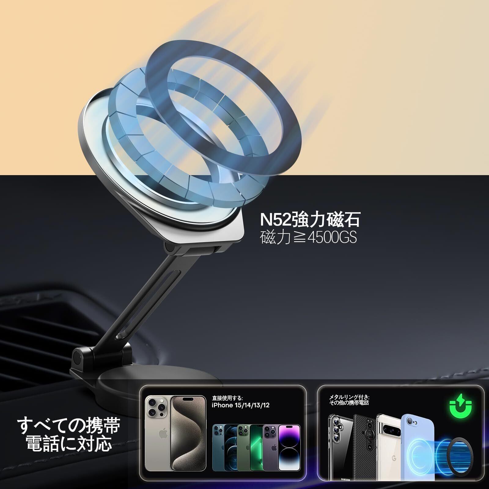 【在庫処分】【2024年進化超強磁力】スマホホルダー車 Mag-Safe 車載 ホルダーに対応 ZooGuree 調節可能 スマホスタンド 車載 スマホホルダー マグネット 落下防止 片手操作 360度回転 可折りたたみ式 携帯ホルダー 高級合金素材 全機種対応 i.Phone 15 14 13 12 Pro Max Plus Mini(4-10.5インチ対応)