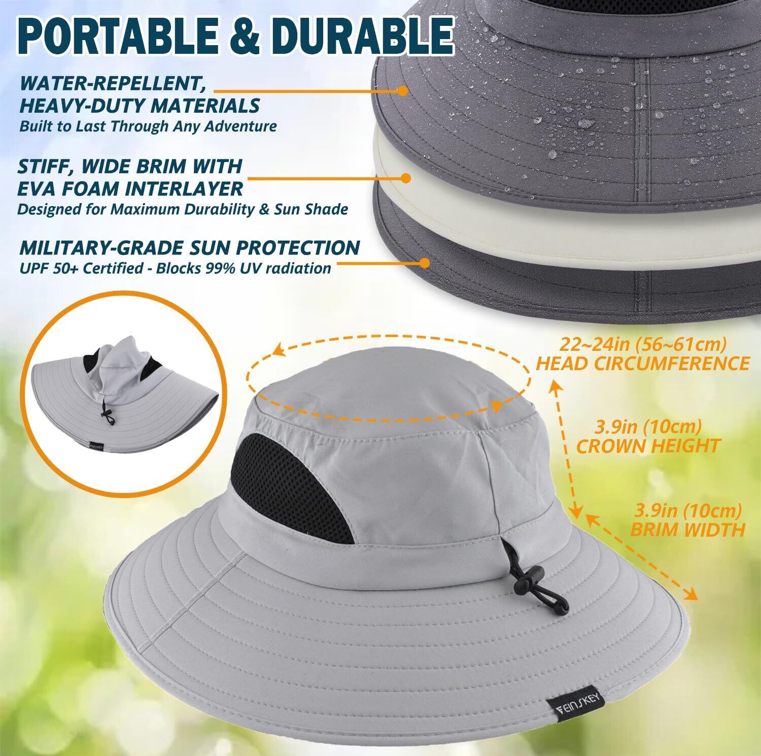 【UV対策&防水】広いつば10センチが有害な光線から顔と首を守ります。防水ポリエステル素材は細かい雨の浸透を防ぎますが、中雨や大雨の中での使用はお勧めしません。なぜならあなたの頭が濡れてしまうからです。