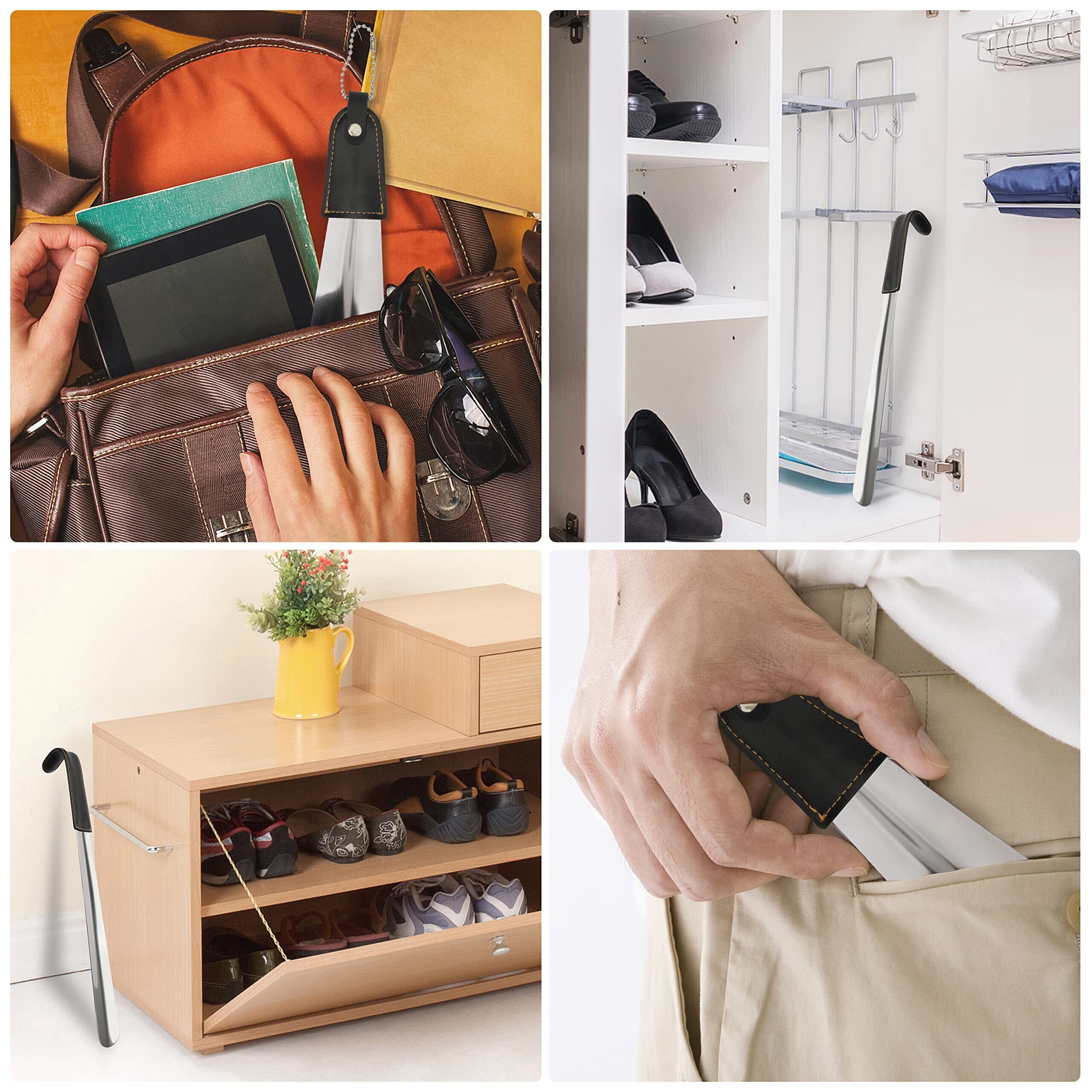 【組み合わせ】長・短の組み合わせ。携帯用のコンパクトなタイプは、バッグやポケットからサッと取り出して使うとスマートでかっこいいです。自宅用のロングなタイプは、出勤時にストレスなく靴を履くことができて便利です。室内にも室外にも役に立ちます。