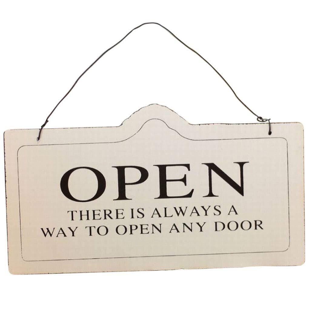 【特価セール】おしゃれ アンティーク 風 オープン & クローズ (OPEN & CLOSED) 営業中 木製 両面 ボード プレート お店 お部屋 カフェ の インテリア 看板 装飾 に (ホワイト 白)