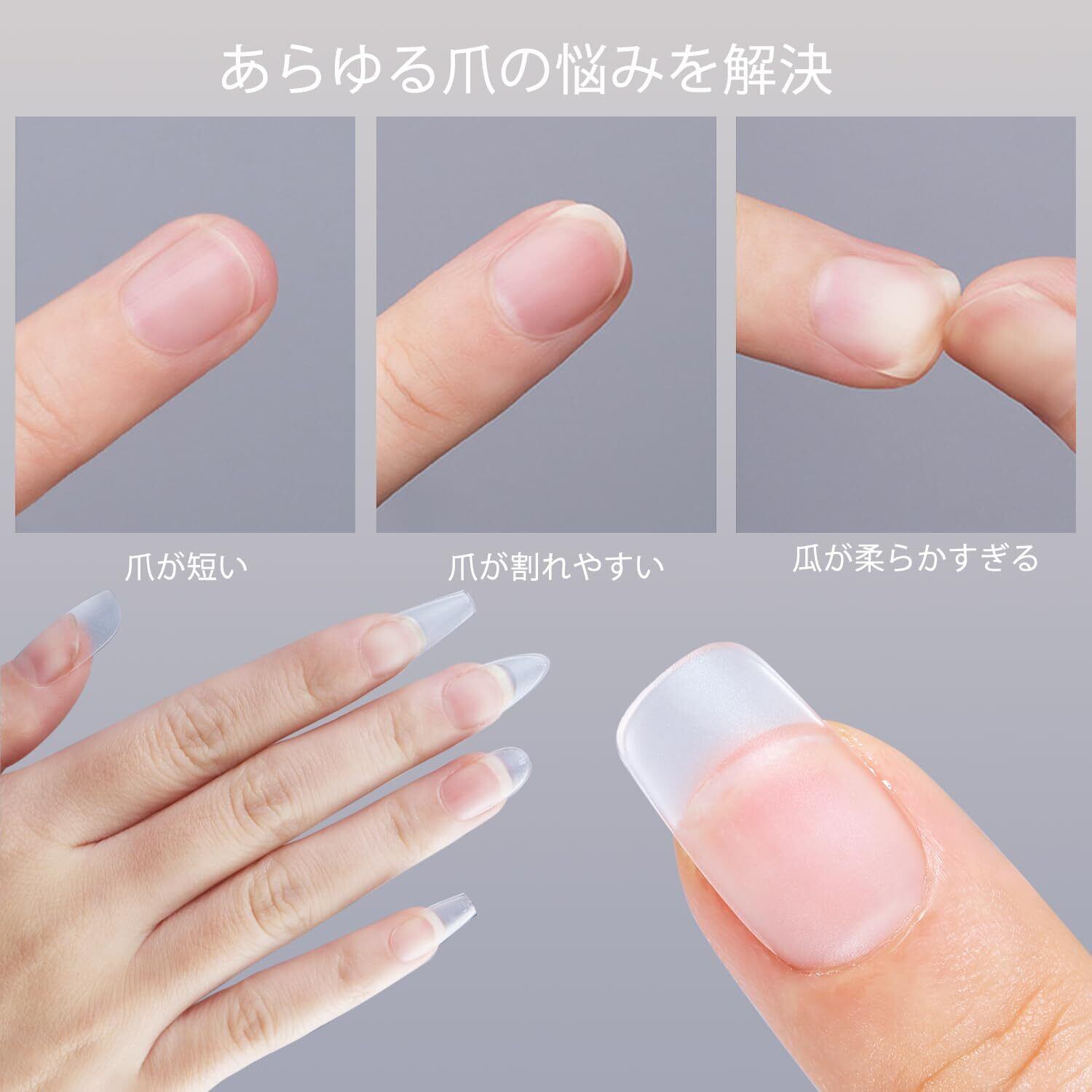 【ナチュラルフィット】このソフトネイルチップは、「薄い後端部、厚い前端部」を特徴としています。薄い後端部はネイルチップ全体が爪にフィットしやすくなり、不快感を感じなくなります。