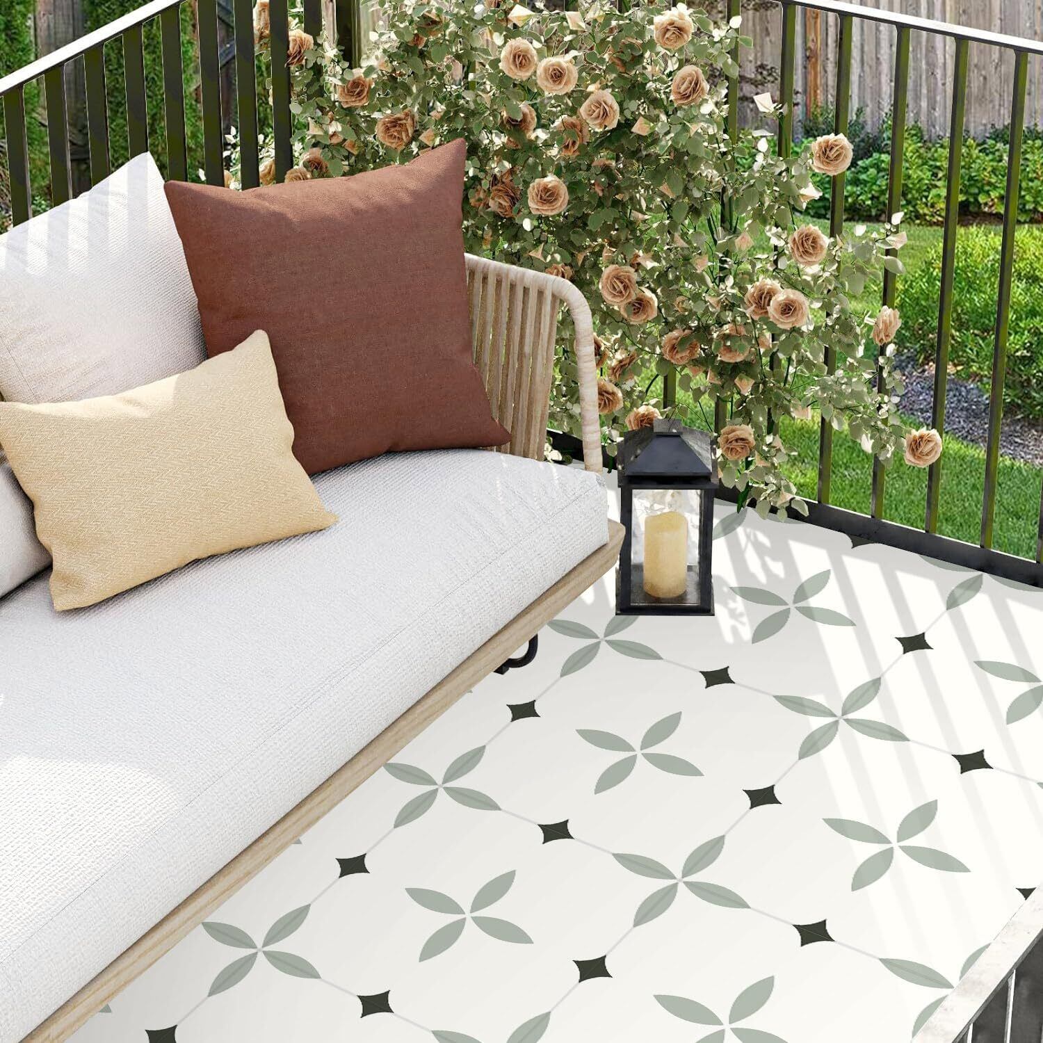 MORCART フロアタイル 接着剤不要 フロアシート 置くだけ 床 リメイクシート 貼るだけ DIY トイレ 浴室 玄関 キッチン フローリングシート 防水 滑り防止 剥がせる 賃貸OK (30*30cm*20枚 / 約1畳分, くすみグリーンブロッサム)