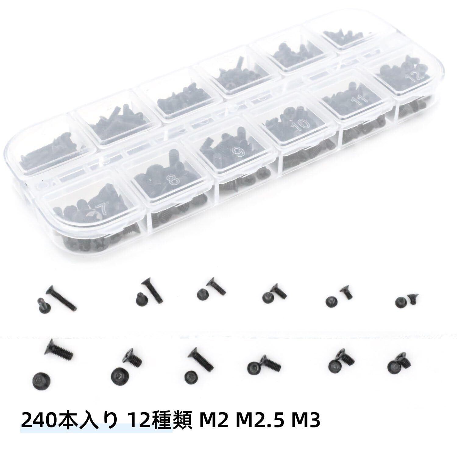 【多種多様なサイズ】M2、M2.5、M3の12種類合計240本入り。様々なネジを揃えており、ノートパソコンの修理に最適です。