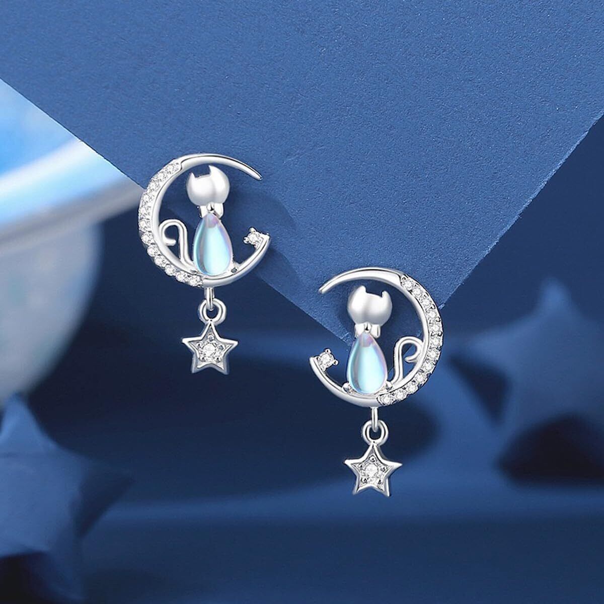 Z.Angie 猫 ピアス レディース キティ イヤリング シルバー925 プラチナコーティング AAAジルコニアCZ 人気アクセサリー 誕生日プレゼント クリスマスギフト