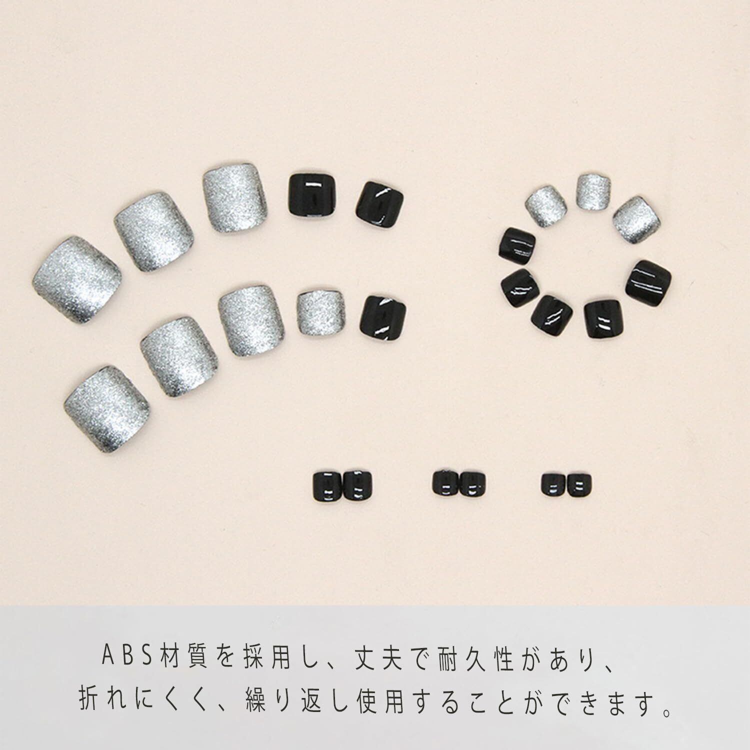 XUZOO 24枚 足用 ネイルチップ フットネイルシール フットネイルチップ ジェル 足用 ネイルチップ おしゃれ 人気 足 付け爪 つけ爪 結婚式 花嫁足用ネイルチップ 成人式 夏 足用ネイルステッカー ネイルツール 両面テープ付き (シルバーとブラック)