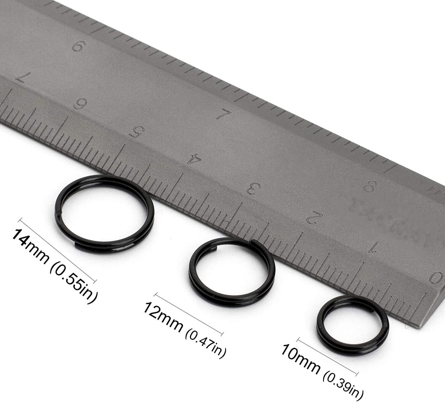 [TIMULTI] キーリング チタン キーホルダー二重リング 細い ミニ 丸カン キーチェーン メンズ 軽量 艶のある表面(10mm・12mm・14mm/ブラック)