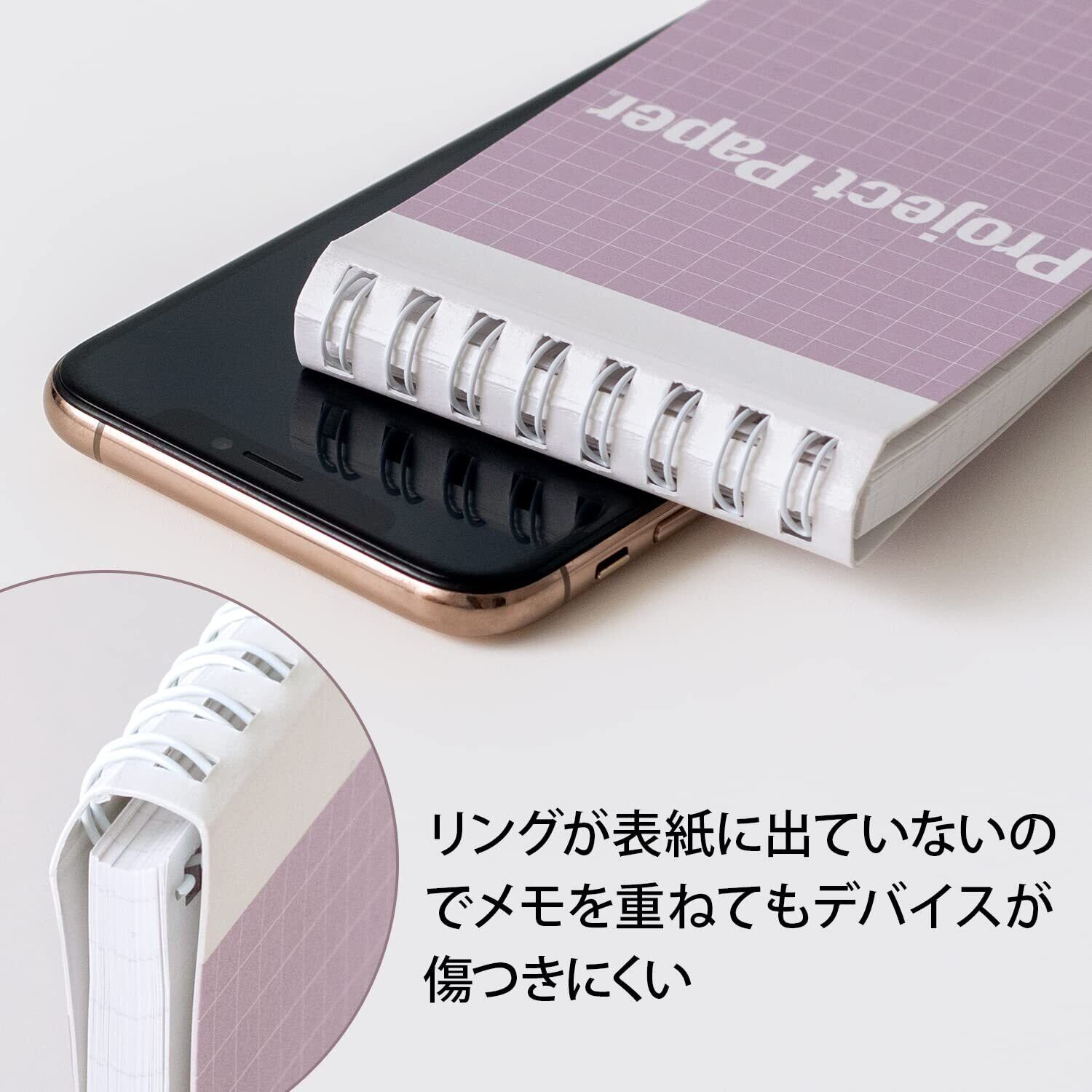 リングが表紙に出ていないのでメモを重ねてもデバイスが傷つきにくくなっています