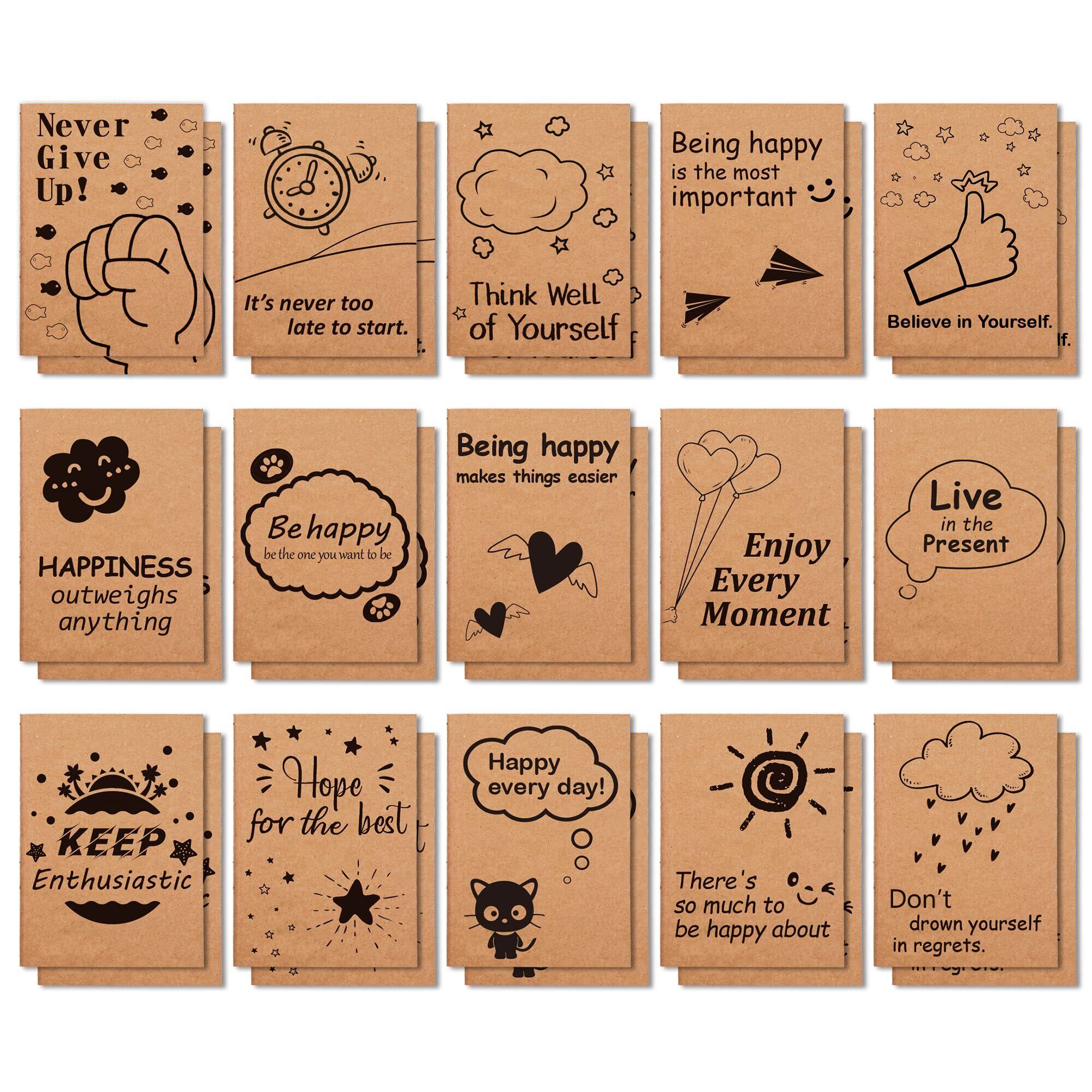 Feela クラフトノート30枚パック、Feela 15デザイン A6 かわいいミニポケットノートとジャーナル、罫線入り80ページ モチベーション スモールジャーナルノートブック 女性用 学用品メモ用 4.1 x 5.8インチ