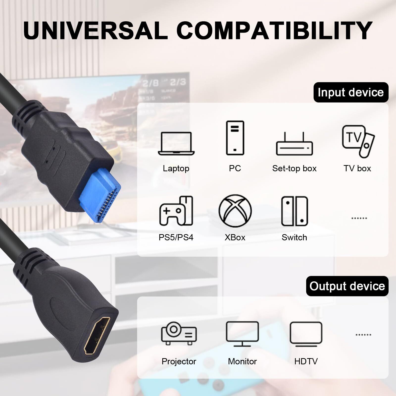 このHDMIオスメス延長ケーブルは、Roku TV/HDTV/PS5/Blu-ray、PS4、PS3、Xbox/Xbox 360、Fire TV、3Dプレーヤー、および高速hdmi 4k、hdr、arc、hdcpを必要とする任意のデバイスと互換性があります。
