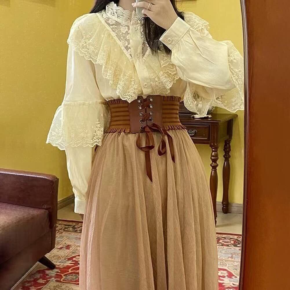 [InSomila] [インソミラ] サッシュベルト コルセット ベルト レディース レースアップ ゴム リボン ワイドベルト レザー フェイクレザー 太ベルト ゴムベルト 太 伸びる フリル付き スナップボタン付き カジュアル おしゃれ