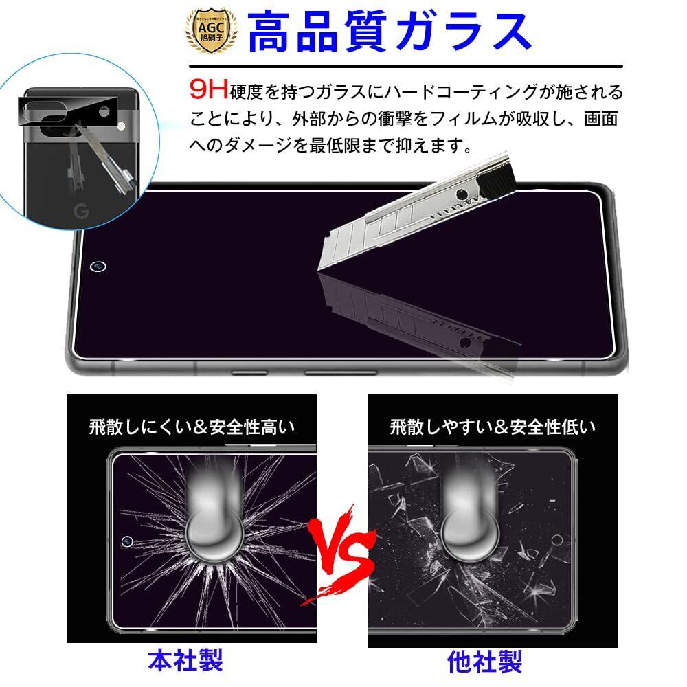 対応 Google Pixel 7A 用 フィルム,ブルーライトカット 旭硝子 google Pixel 7a 用 ガラスフィルム【2枚+2枚】レンズ保護フィルム付 フルカバー Pixel 7A 用 強化ガラス 液晶保護フィルム 反射防止 目の疲れ軽減 グーグルピクセル7A 気泡レス 耐衝撃 9H硬度 ケースと相性バッチリ 防指紋 端欠け防止