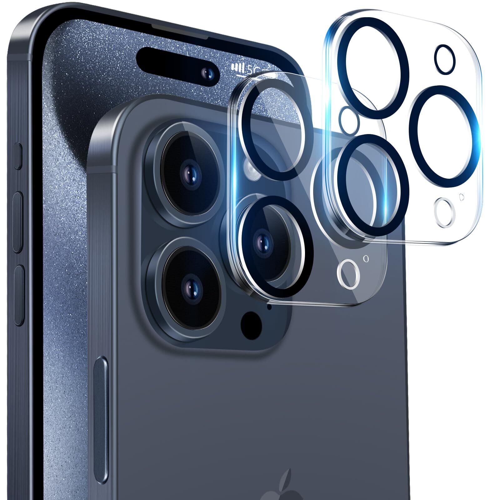 【特価セール】iPhone 15 Pro/iPhone 15 Pro Max 用 カメラフィルム アイホン 15プロ / 15プロマックス 対応 カメラ保護フィルム 黒縁取り 露出オーバー防止 硬度9H キズ防止 耐衝撃 防滴 防塵 強化ガラス【2枚セット】