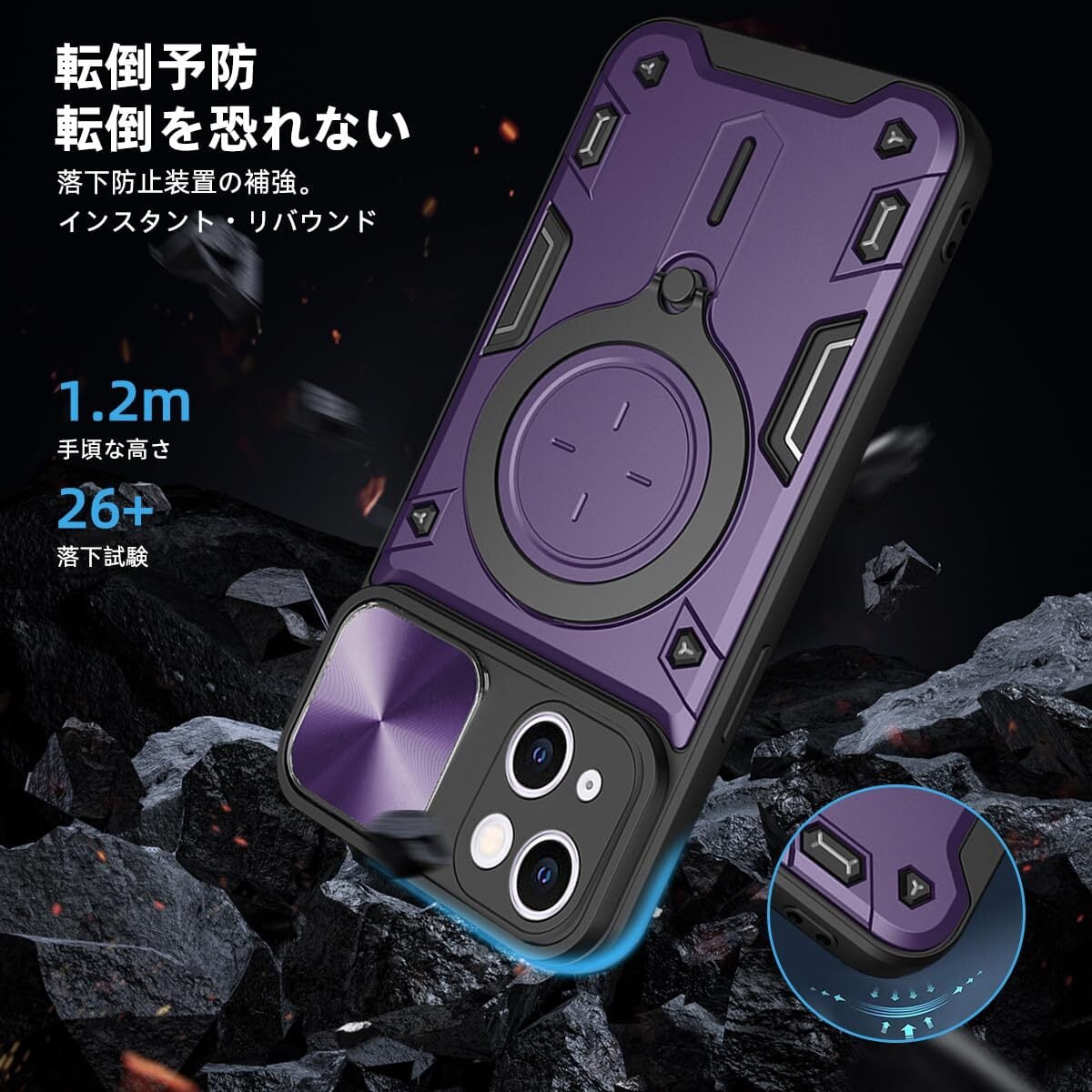 iPhone 15 Plus ケース iPhone15plus スマホケース ンド レンズ保護 リング スタンド機能ケース 付き 携帯ケース 人気 米軍MIL規格取得 耐衝撃 吸収 Case Cover アイフォン iphone15 プラス iphone15プラス 15plus 15プラス 15+ 背面 カバー レディース メンズ 6.7インチ(パープル)